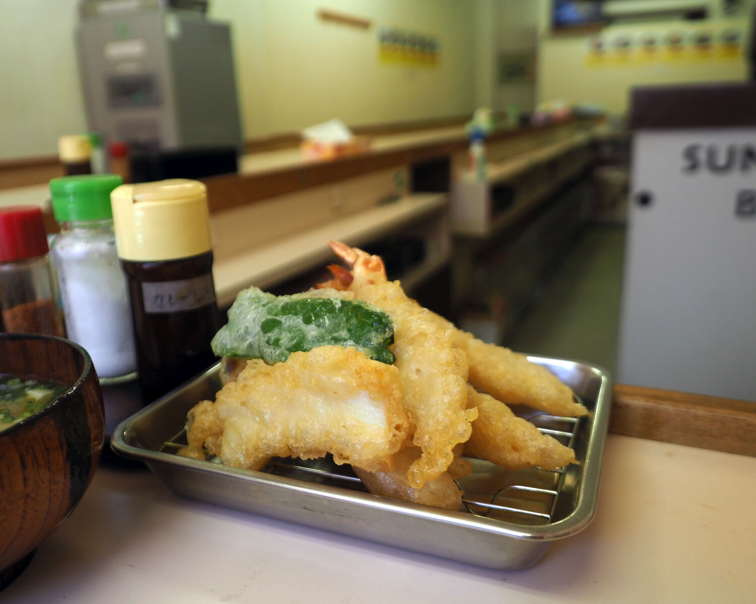 4尾もが盛られた海老が保水加工されたものであったことや、“天ぷら”と言うよりも“フリット”に近いものであったことが私には残念に思えました