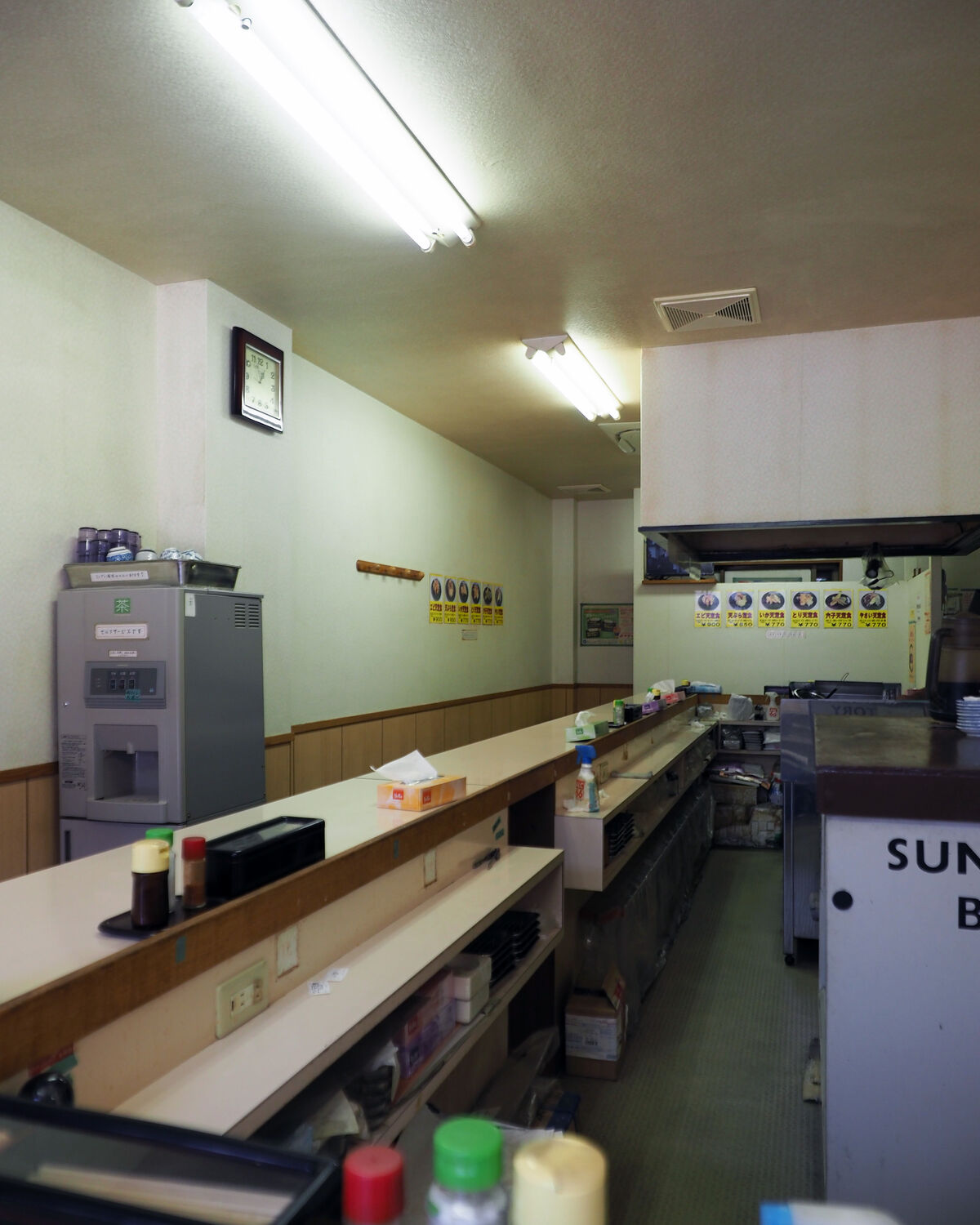お昼どきを過ぎていたせいか、14席ほどが並ぶカウンターには先客の姿もスタッフも姿もなく…