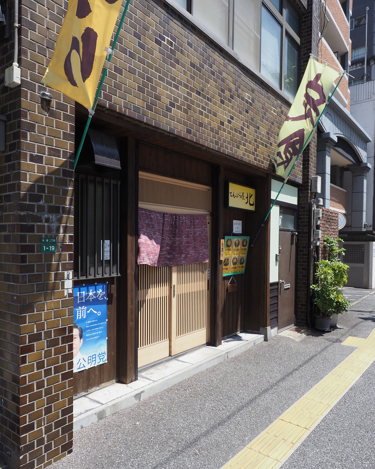 縦格子の引き戸やそこに掛けられた暖簾に上品な雰囲気を感じることができますが、その隣には1,000円もしない天ぷら定食のメニューが掲げられていまして…