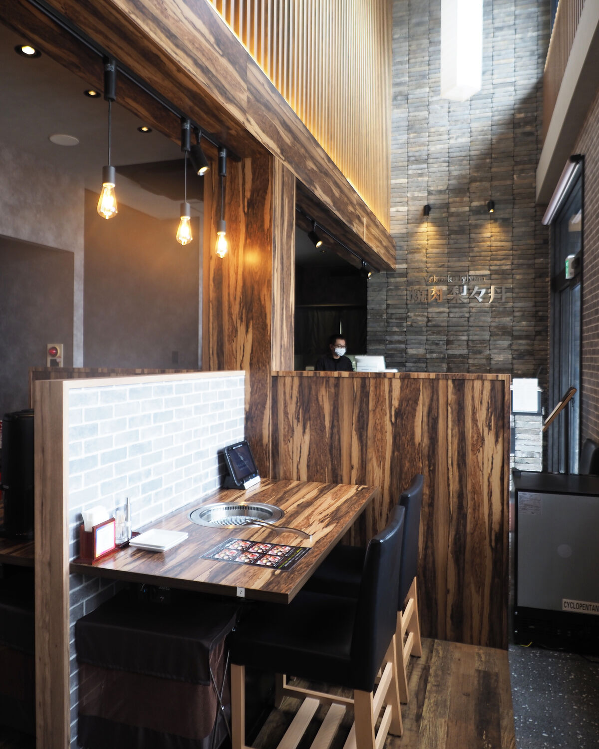 黒を基調とした外壁に白木をアクセントにした洗練されたデザインとなっていますし、店内はゆったりと空間をとって並べられたテーブル席や、縦格子で目隠しされた小上がり席、そしてカップルシートのようなふたり席があったりと上品まとめられていて、2階席も含めて80席ほどがあるようです