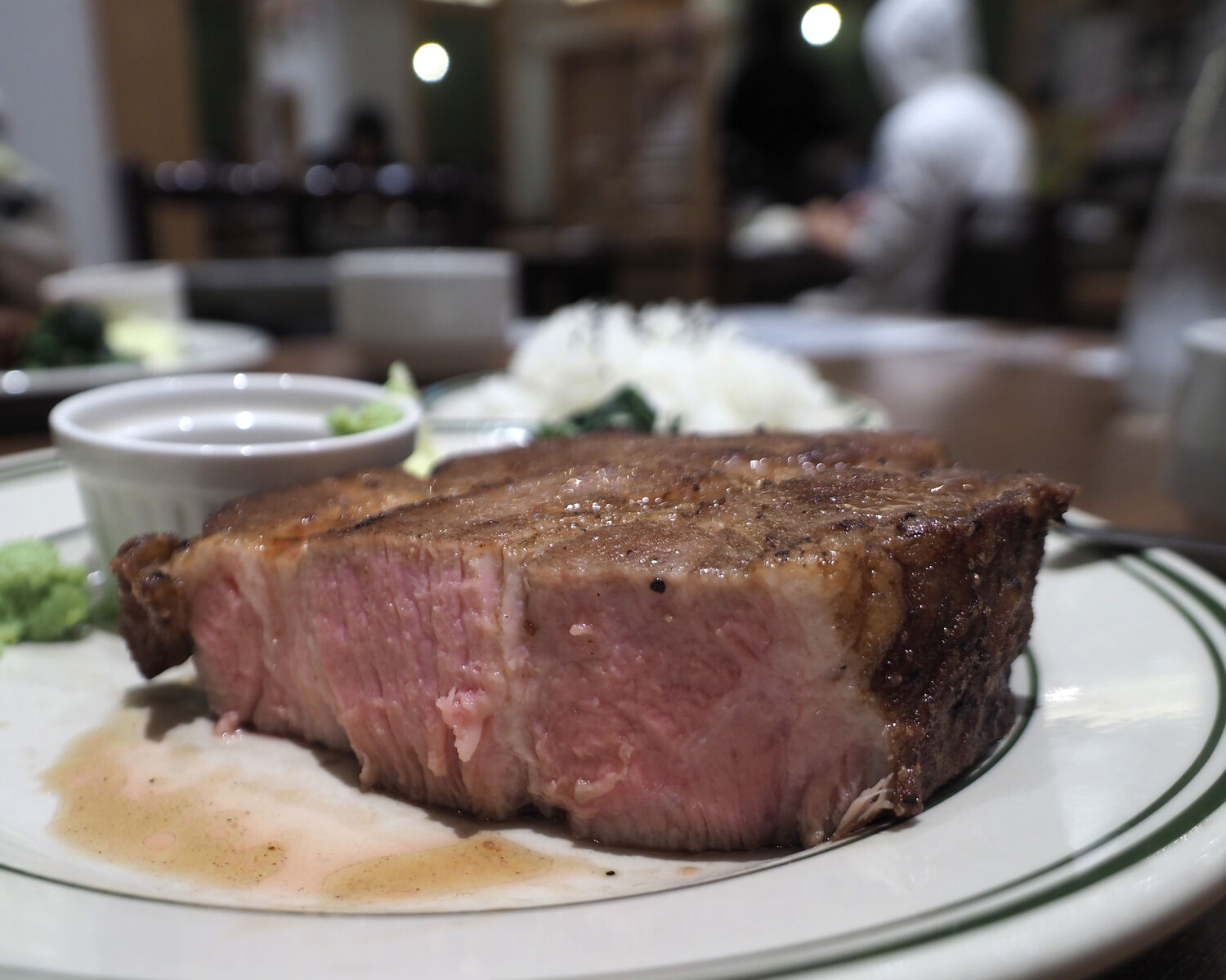 お願いした450gの「富士山」は30mmほどの厚みがある切り口から肉汁が滲み出るものでありました