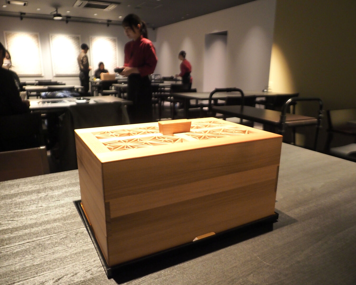 福岡県南西部にあって、家具の町として知られる大川市の伝統工芸品“大川組子”で作られた蓋が被せられるように提供されまして…
