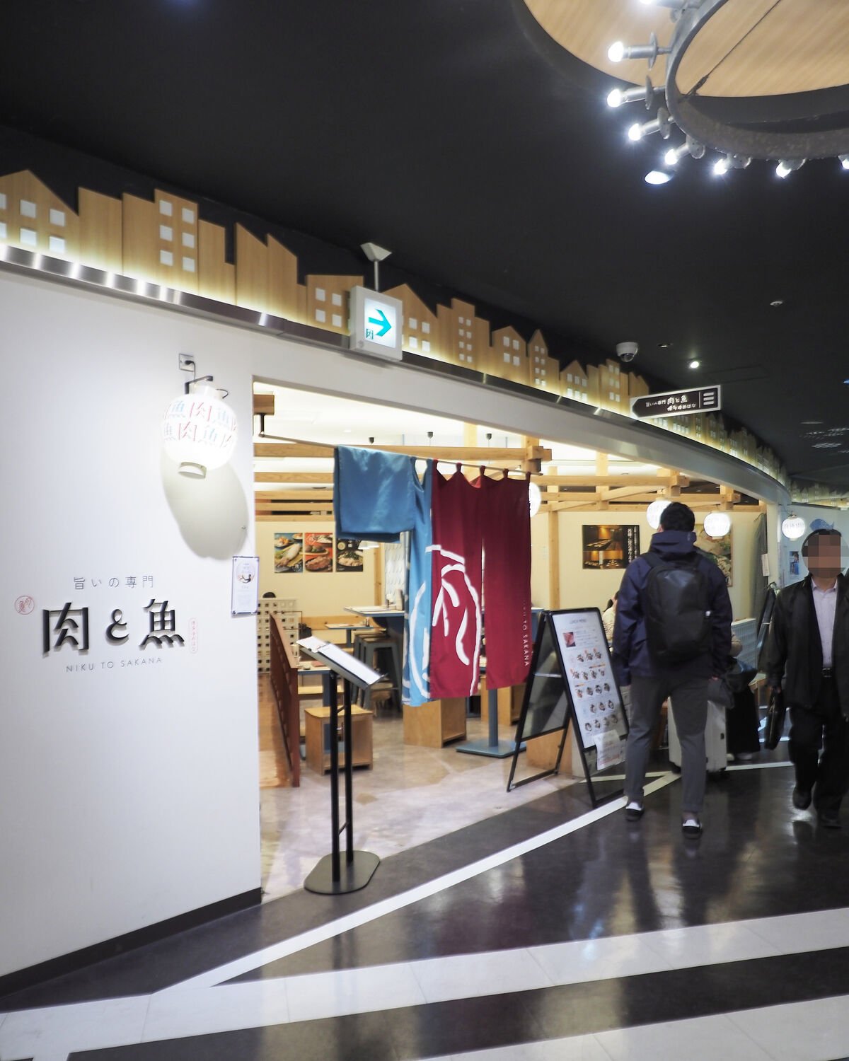 “肉と魚”とのコンセプトを表しているのか、ボルドーとマリンブルーの2色の暖簾が掛けられた『博多ゆめはな』へお邪魔させていただきます