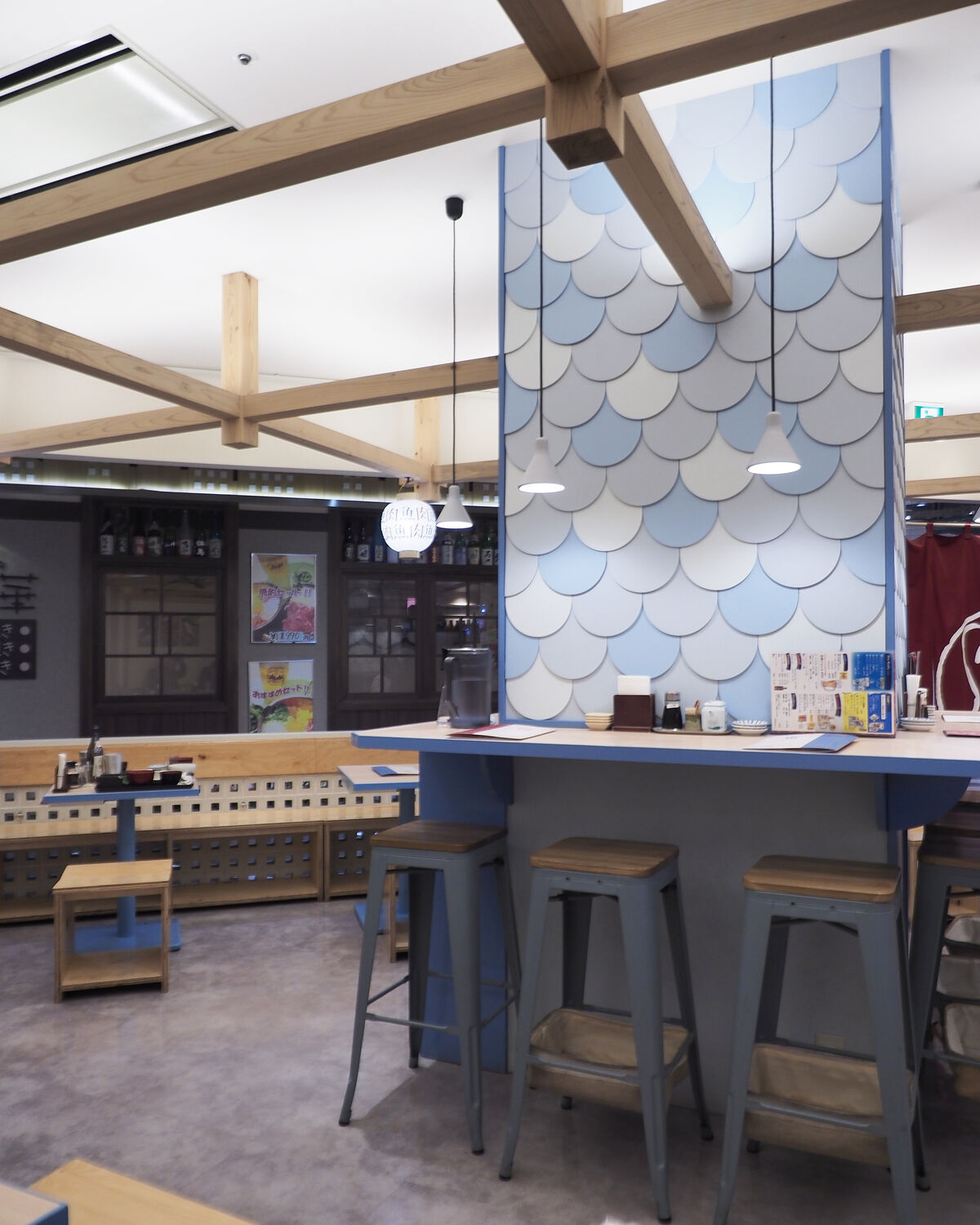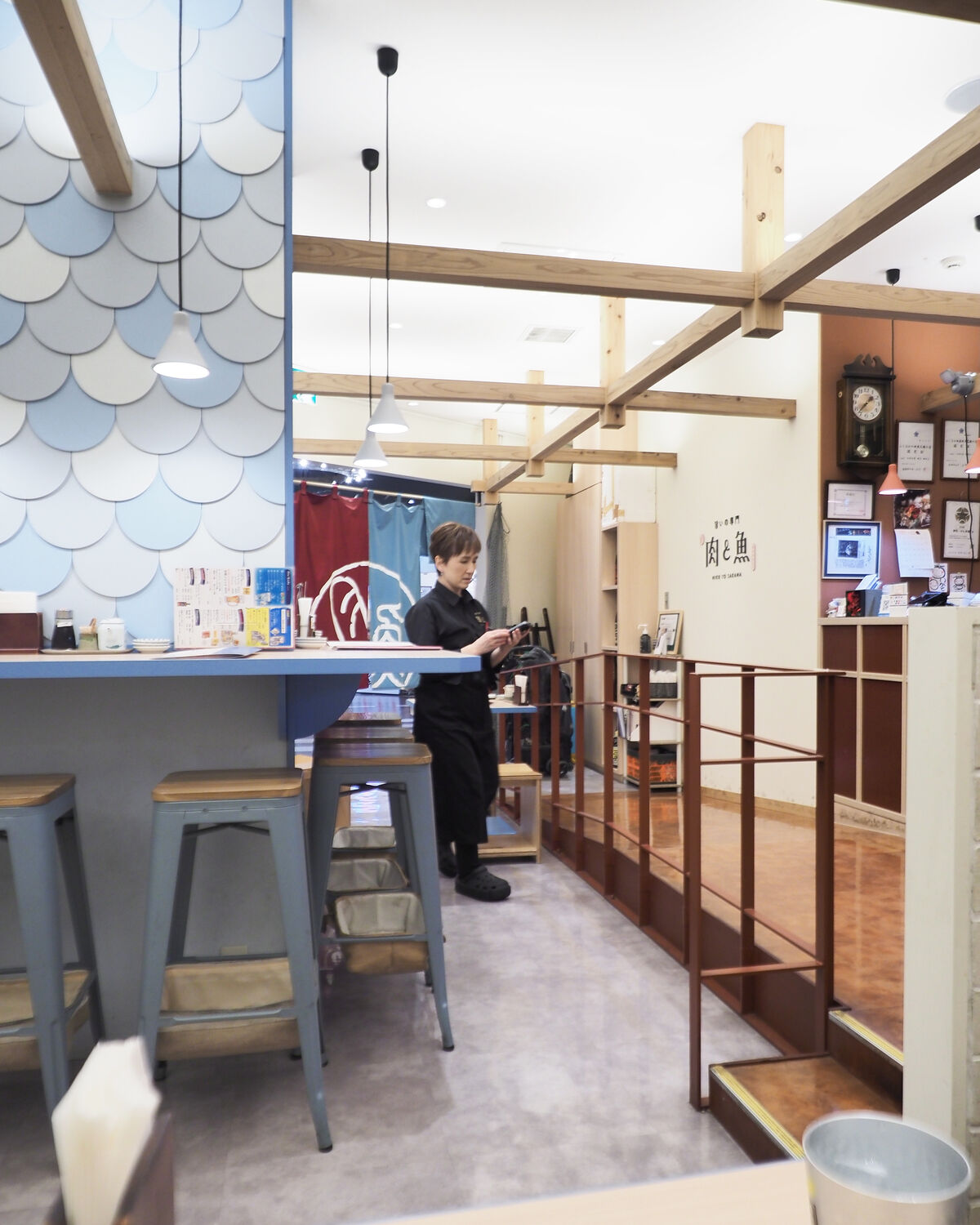 お店の中央にある柱の周りに6席ほどのカウンターと厨房と向かい合うカウンター6席、そして2名掛けのテーブルが10卓と30席ほどのお店かと思っていたのですが、なんと奥に60席ほどの座敷席もあるとのことに驚きました