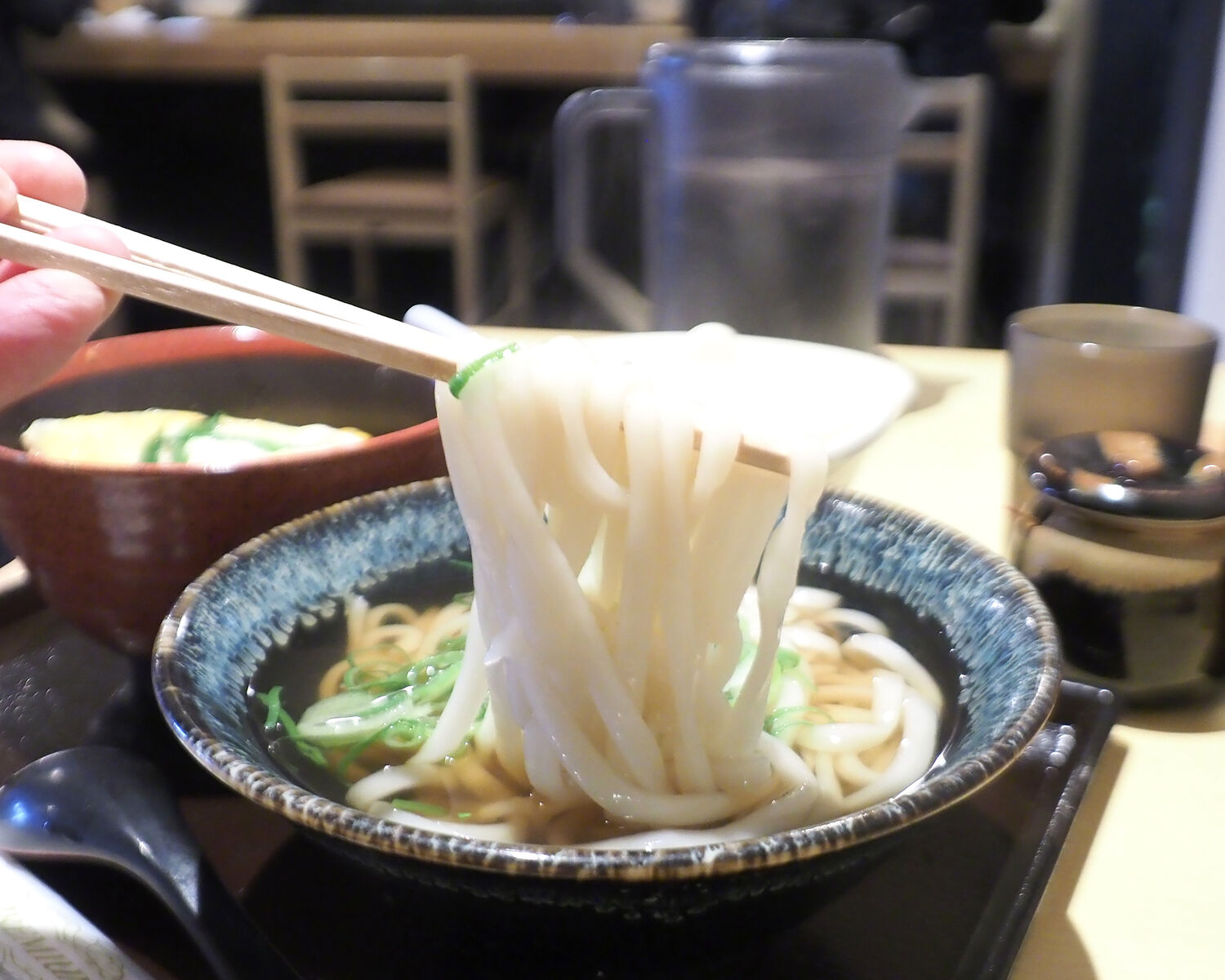 オフィスビルの一階でありますが、瓦葺きの玄関庇や縄のれん、路地行燈とうどん店らしい“和”を演出されたファサードにおいしさを感じることができますし…