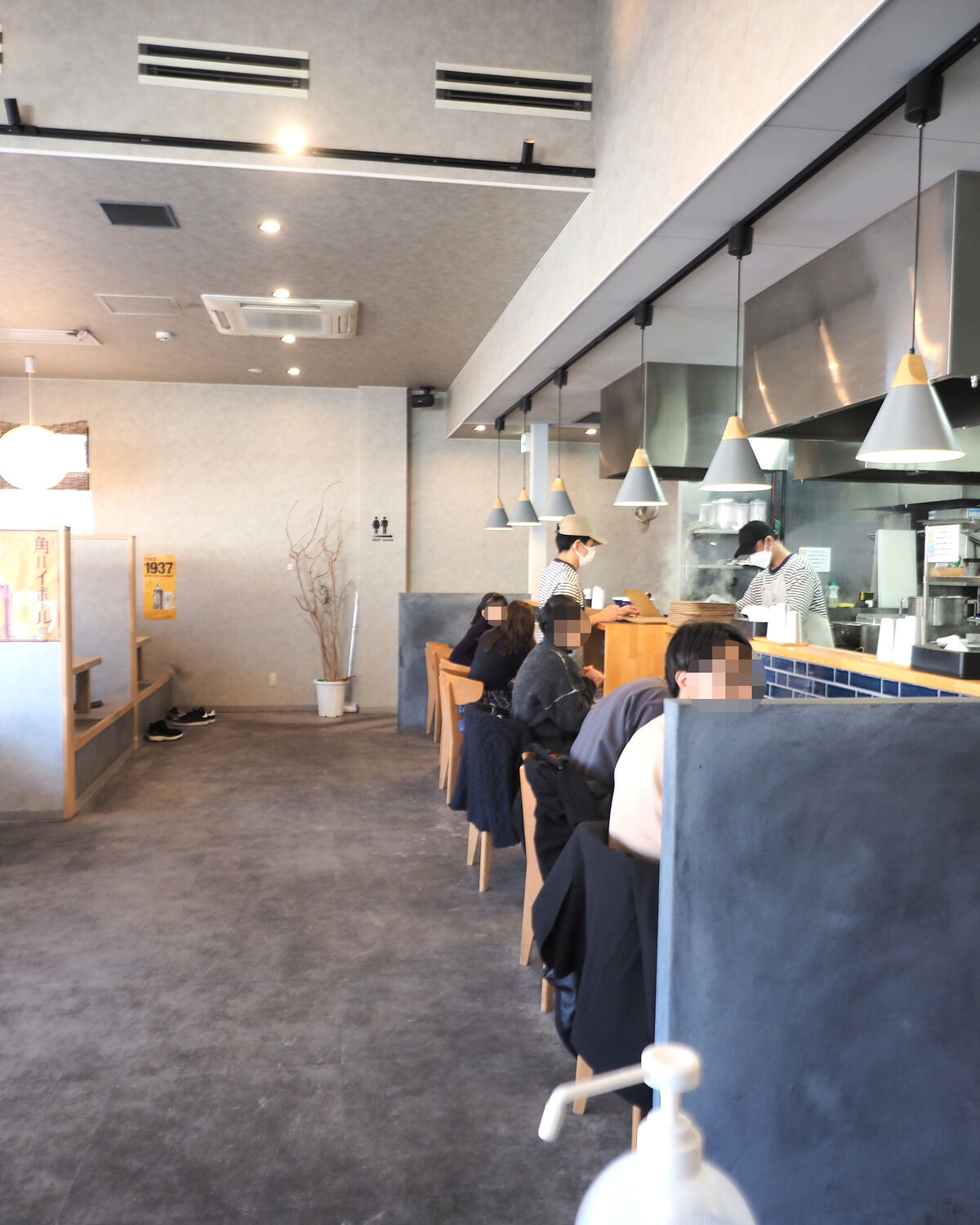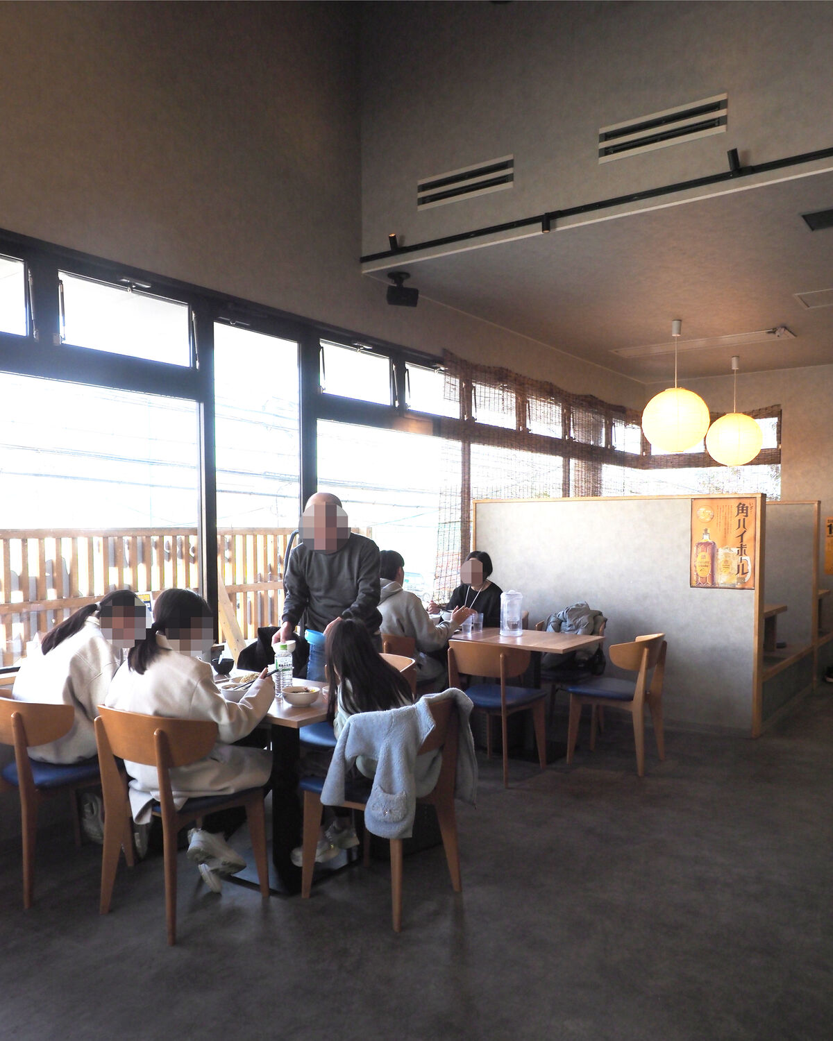 テーブル3卓12席と小上がり2卓12席のほか6席のカウンターが置かれるだけでありますので広々とした空間が広がります