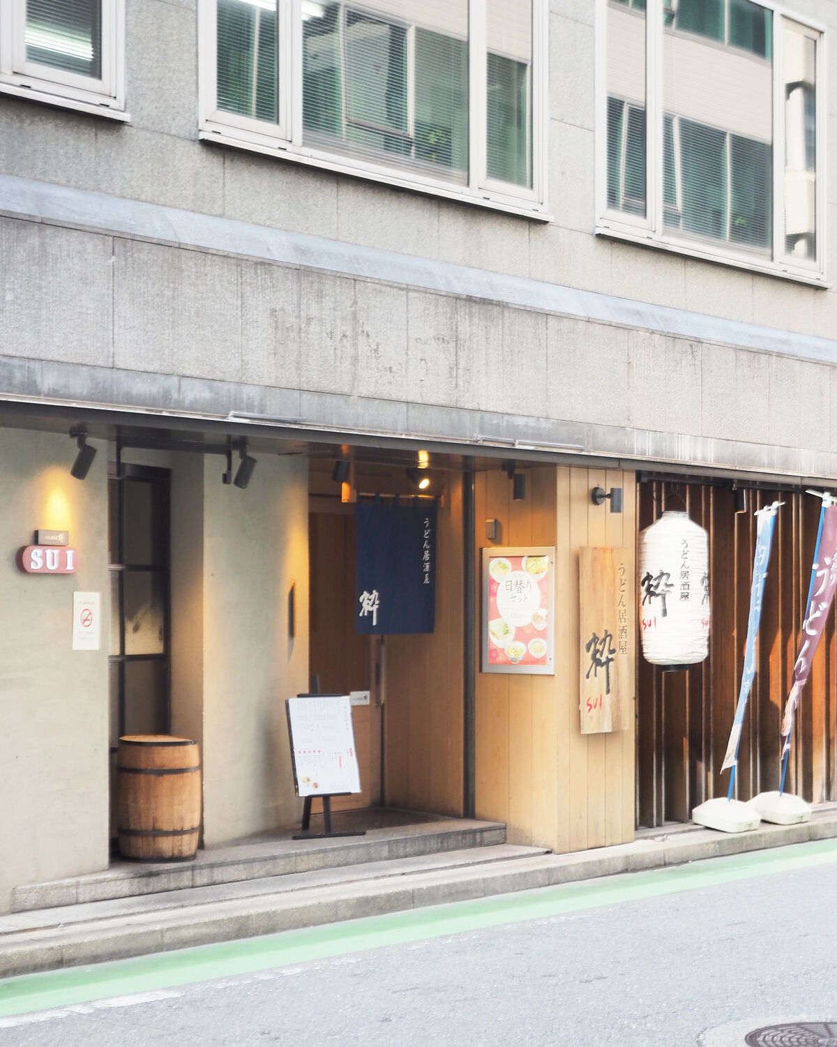 それでブラブラと歩いていて見つけたのが『うどん居酒屋 粋』でありまして、ファサードにある提灯や看板、暖簾にセンスを感じてお邪魔させていただきます