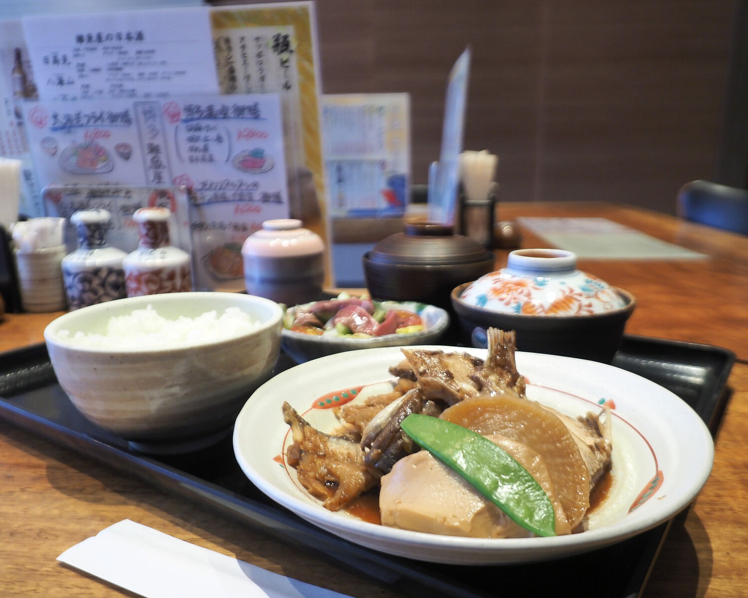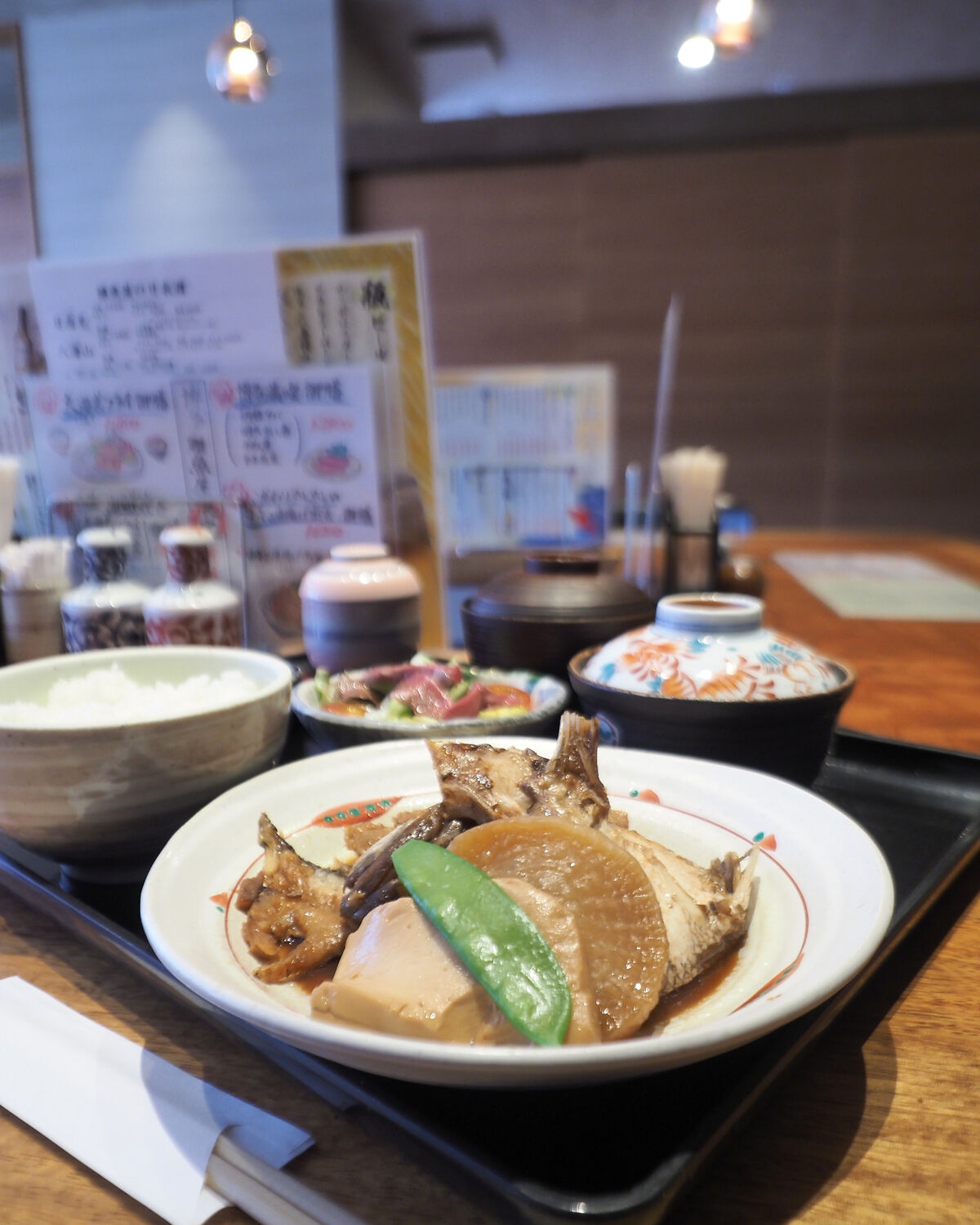 海鮮丼にも惹かれますが、今日は煮魚をいただきたい気分にってことで「あら炊き御膳」をお願いいたします