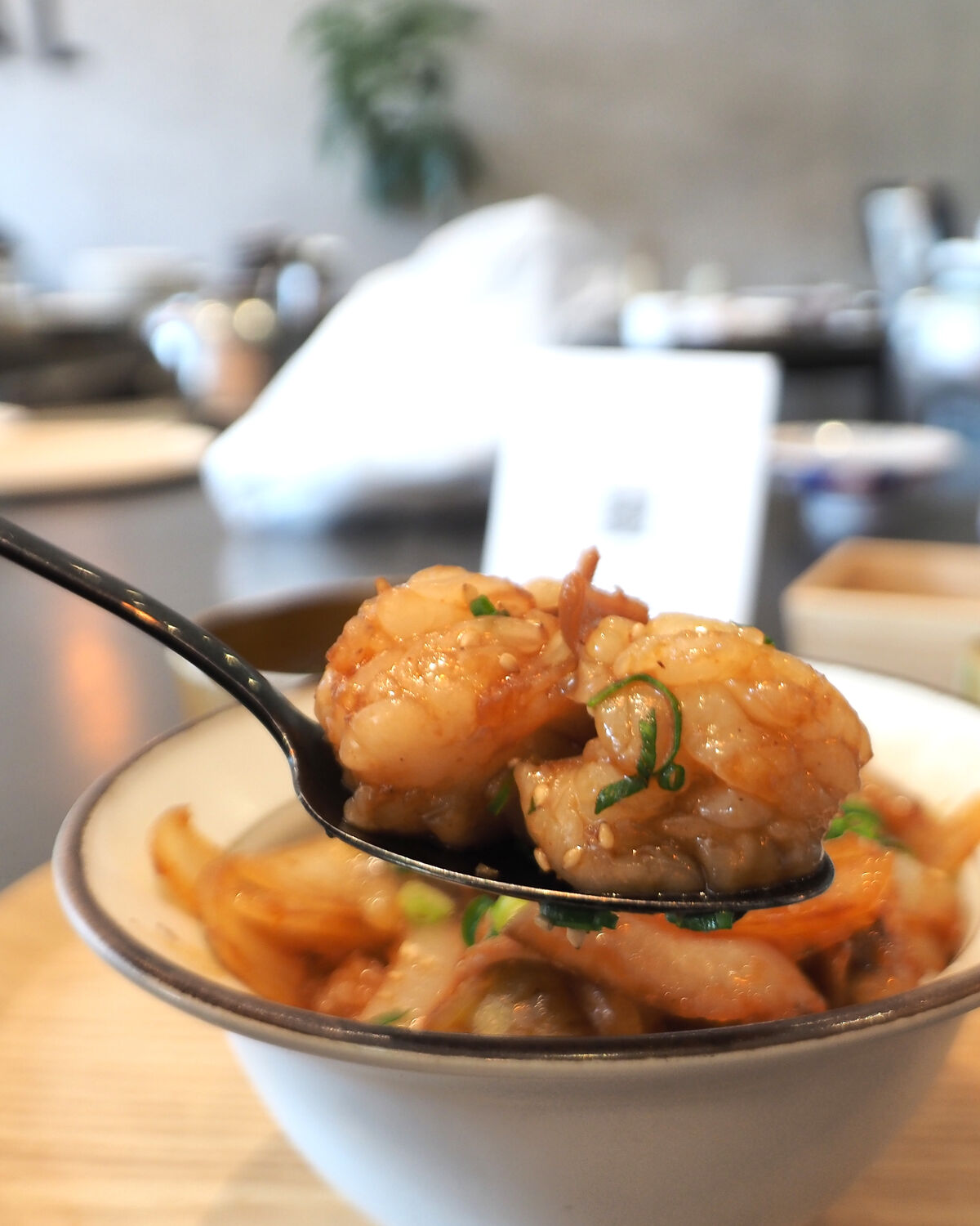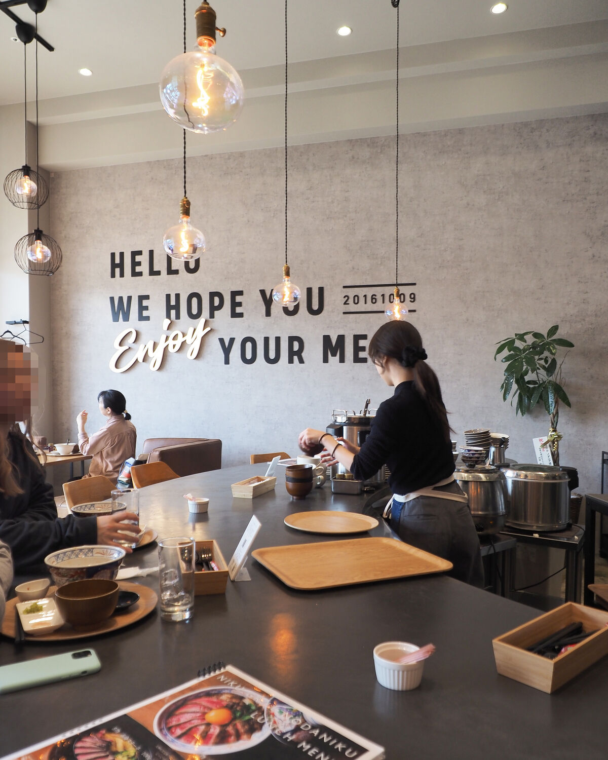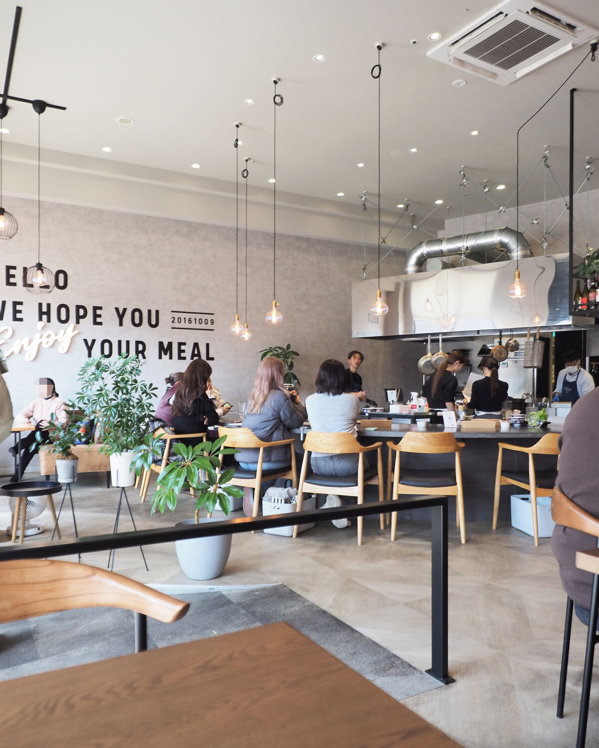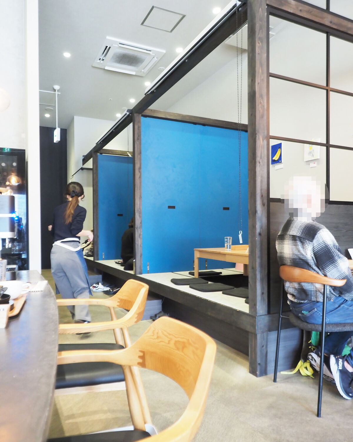 天井が高く開放的な店内にはカウンター10席とテーブル8卓18席、そして小上がり席3卓や個室もありますが、テーブル席は予約のお客さまで埋まっているとのことでカウンターの一席をいただきました