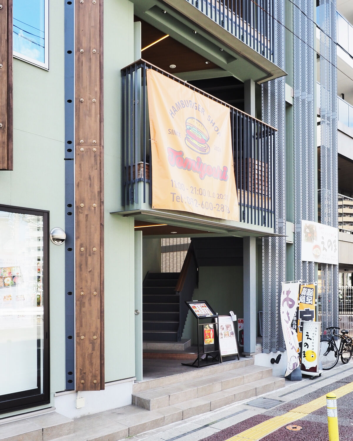 飲食店のほか美容院やショップなど10軒ほどが入る3階建て複合テナントの2階にありまして、共用の外階段でお店へと向かいます