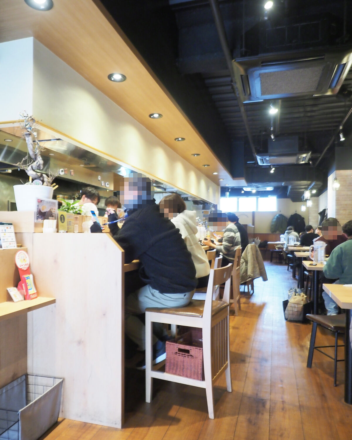 間口の狭さから厨房を囲む10~15席のカウンターだけがある小さなお店であろうと想像していたのですが、カウンター7席のほか4名掛けのテーブルが10卓以上並ぶ大きなお店でありまして…