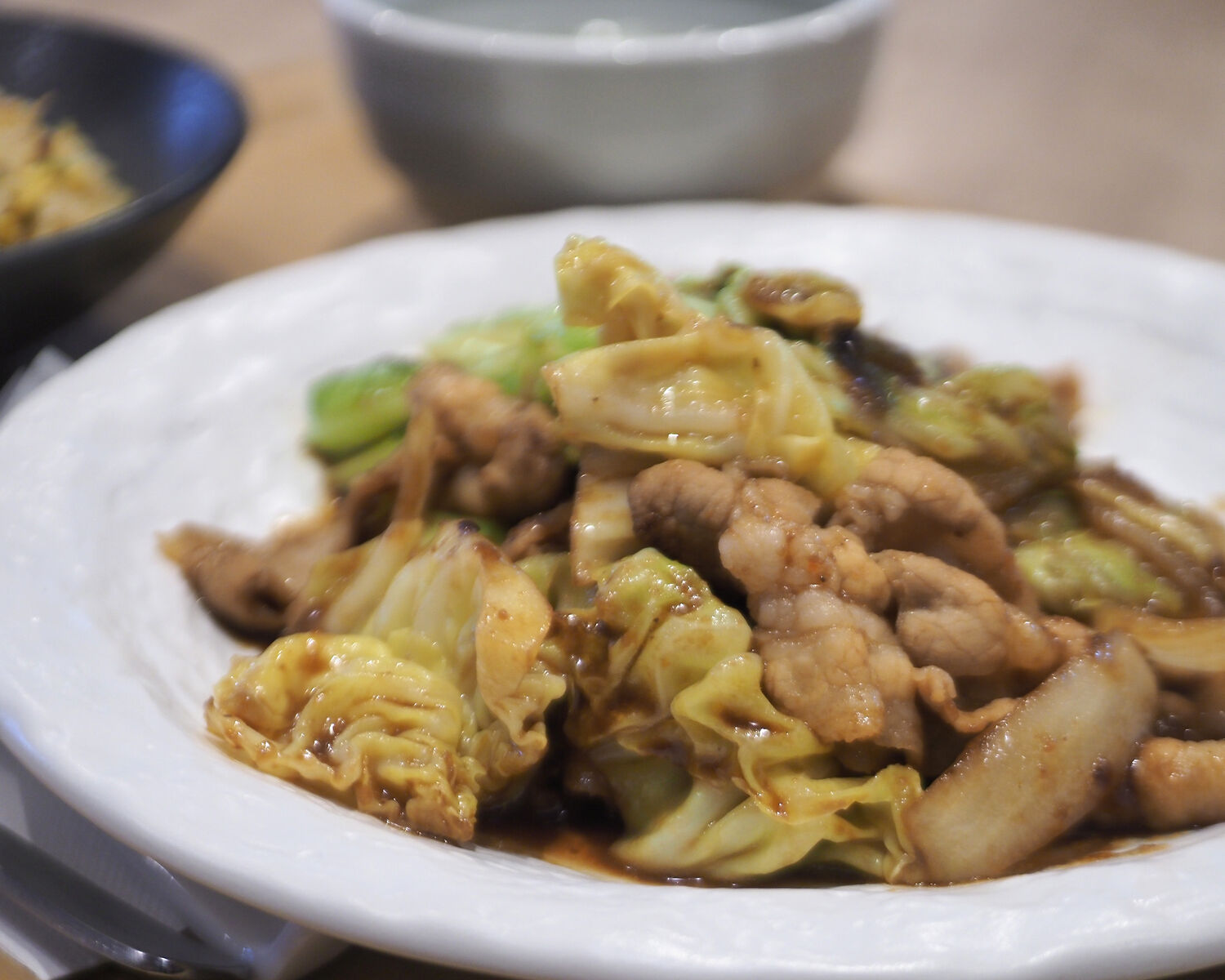 定番にも思えるピーマンが入っていないことから彩りは残念に思えますが、歯ざわりを残すほどに炒められたたっぷりなキャベツの甘みは豚肉との相性がピッタリなものでありましたし、醤油や甜麺醤、豆板醤で調味されたピリッと辛い味わいは白ごはんが進むものでありまして…