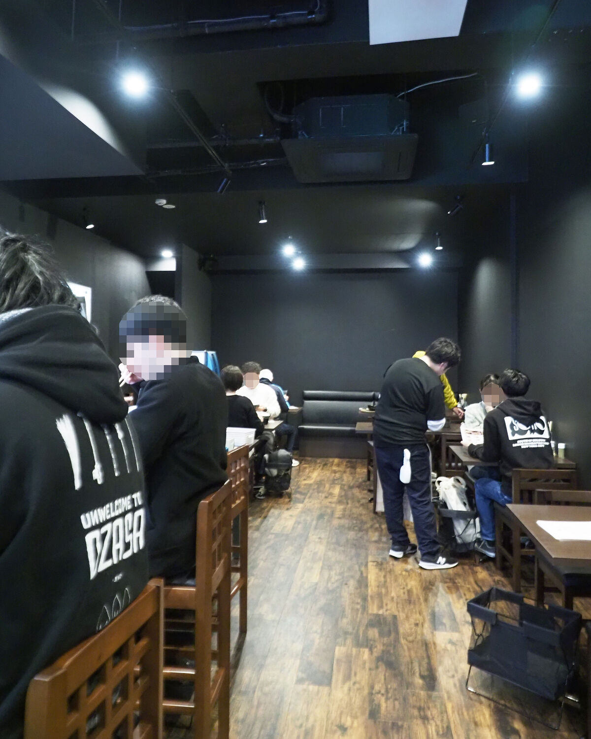 5組7人の先客が待たれていたことから20分ほど待ったところで案内された店内は、カウンター4席と2名掛けテーブル5卓と4名掛けテーブル3卓とゆったりとしていましたし、壁面が真っ黒に塗られたスタイリッシュなものでありました