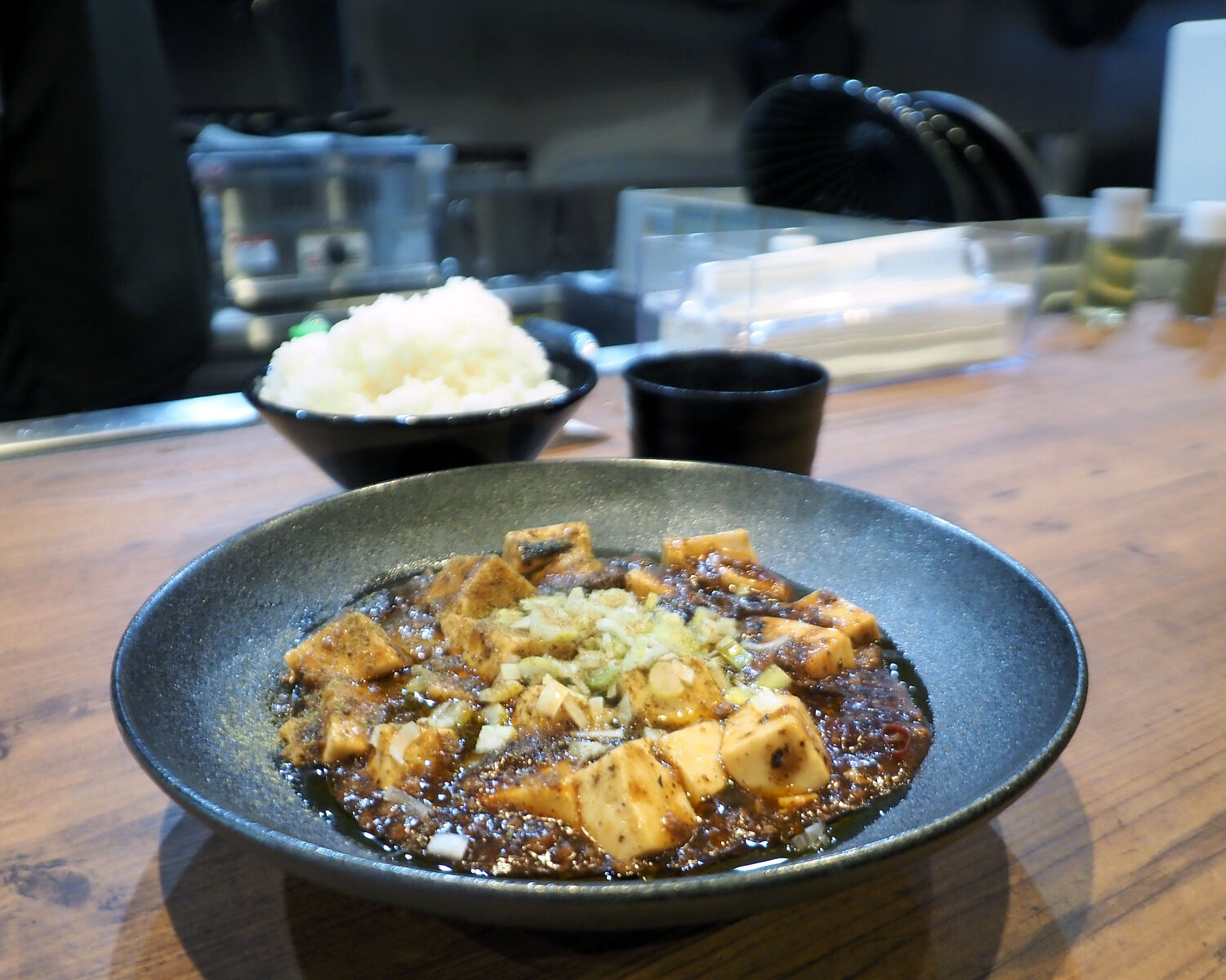 いただいたカウンター席からオープンになった厨房を覗いていますと、事前に準備された麻婆豆腐のベースにお豆腐を加えて温めるだけであるようですし、中華レンジではなく一般的なレンジが置かれるなど、熟練度が低い方でもブレることなく商品が提供できる仕組みができているようですね