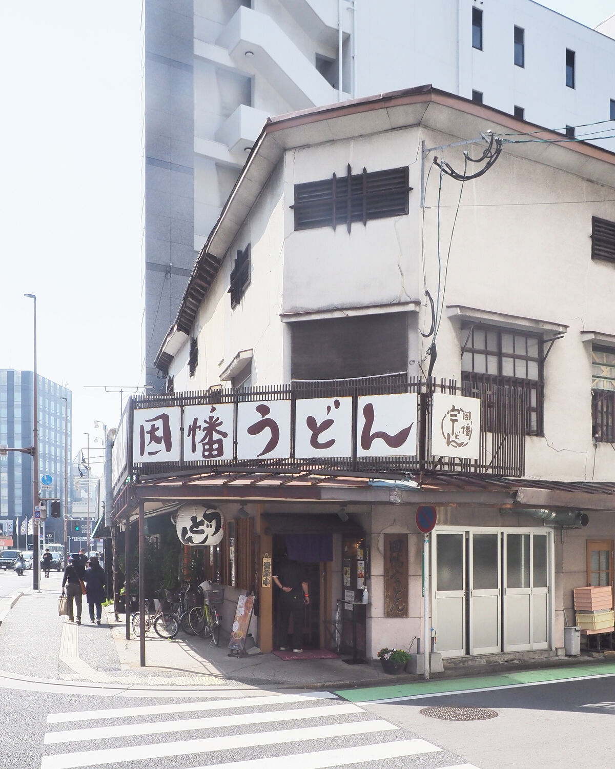 城南線、渡辺通西交差点近くにある“三角市場”の一角で50年続く渡辺通店へ伺い、「海老天うどん」の柔らかな麺と透き通ったやさしいお出汁を楽しみました