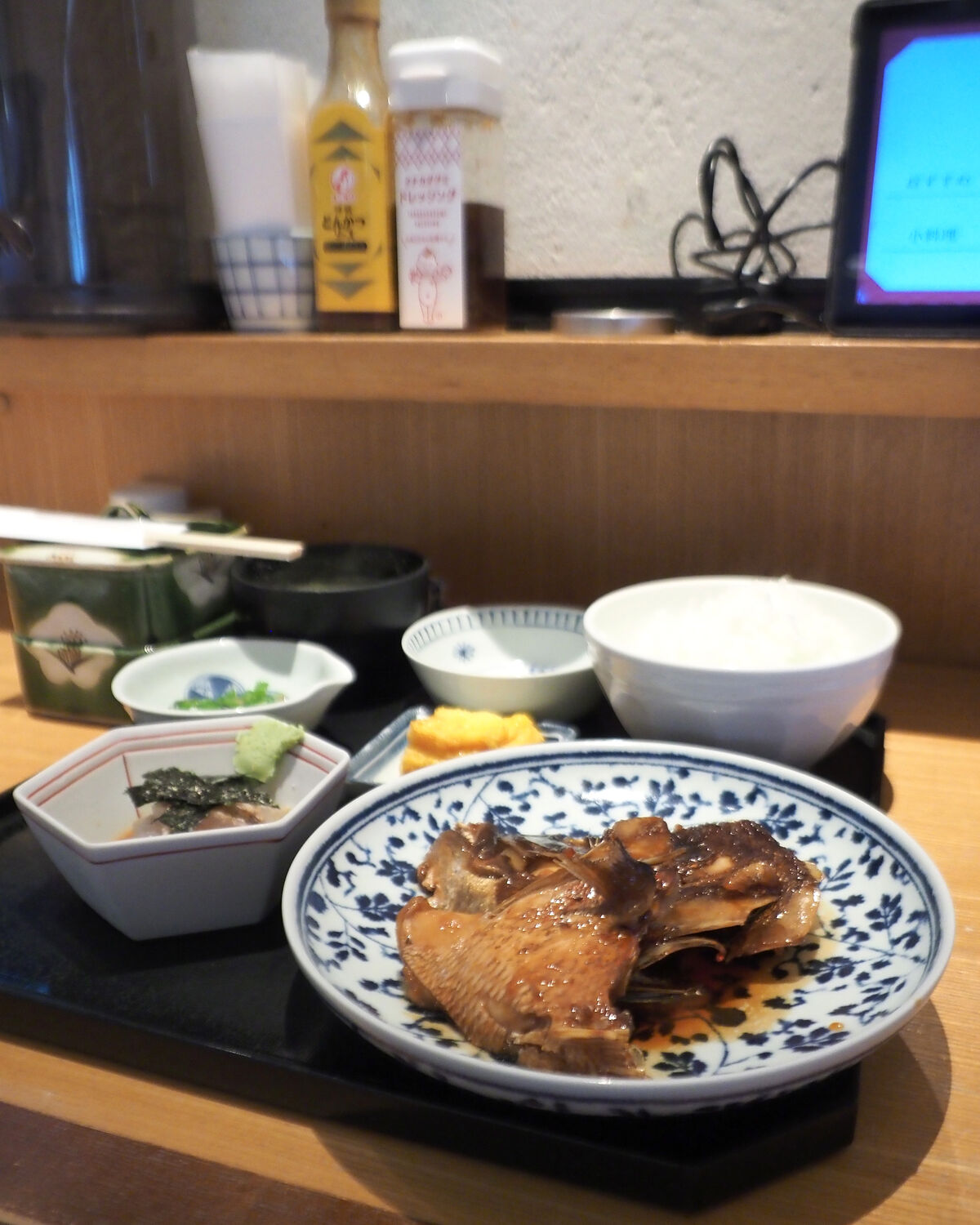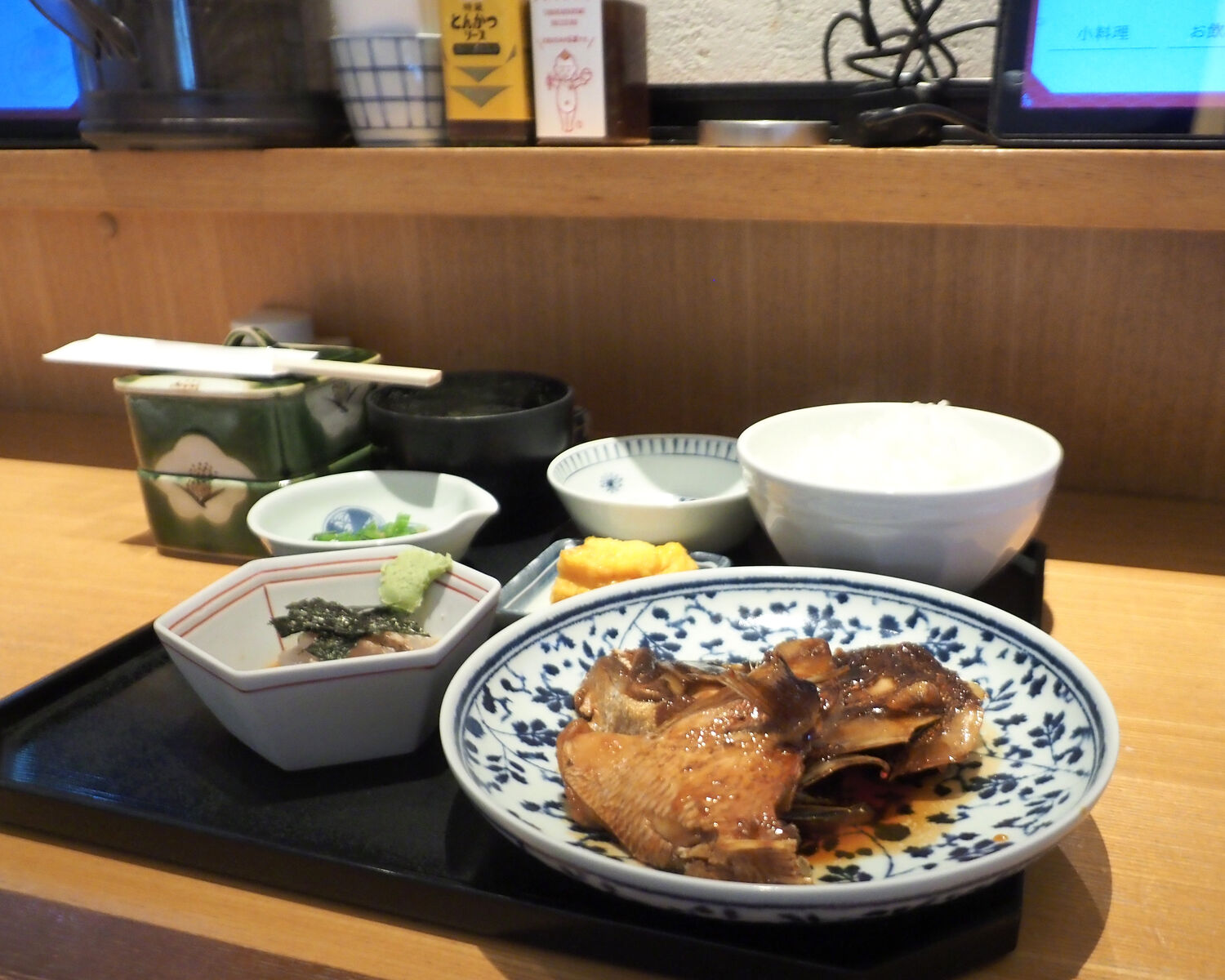 行列が絶えない人気店であることから、お昼のサービスメニューの提供が終わる15:00ギリギリにお邪魔し、「本日のお刺身と選べるメイン膳」を“鯛のあら炊き”でいただきました