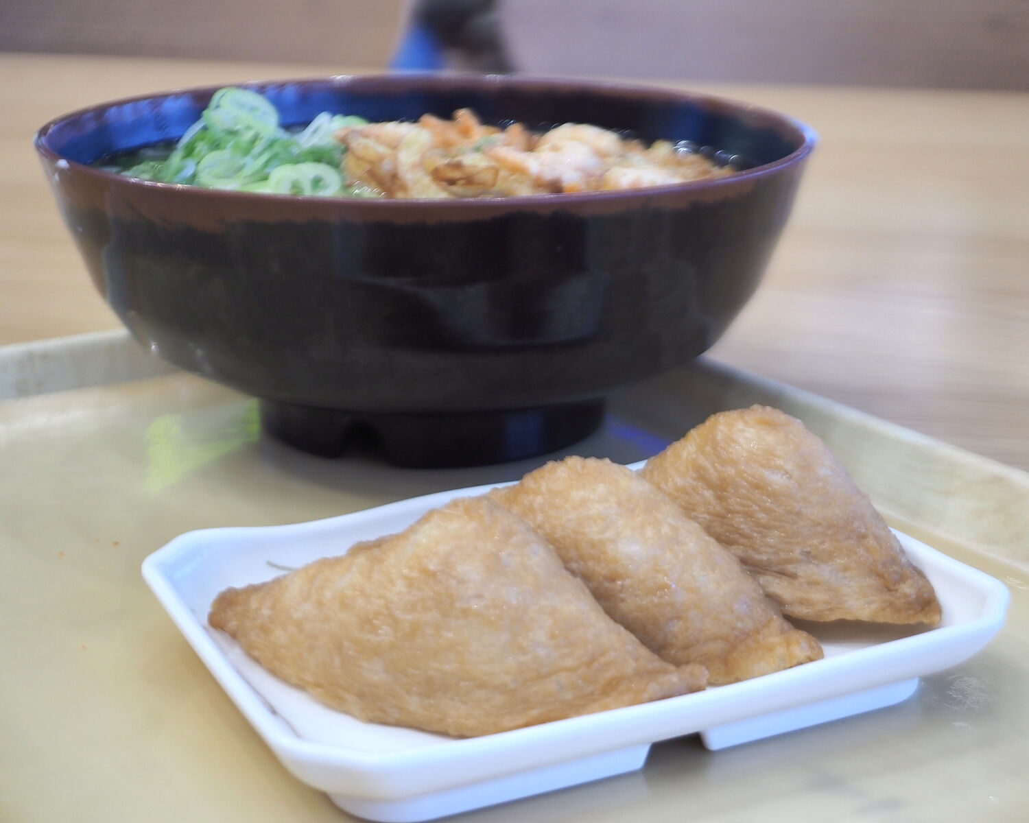 お昼をいただく時間がなくお腹がペコペコであったことからおうどんを大盛りでお願いした上にいなりまで欲張ってしまいまして…
