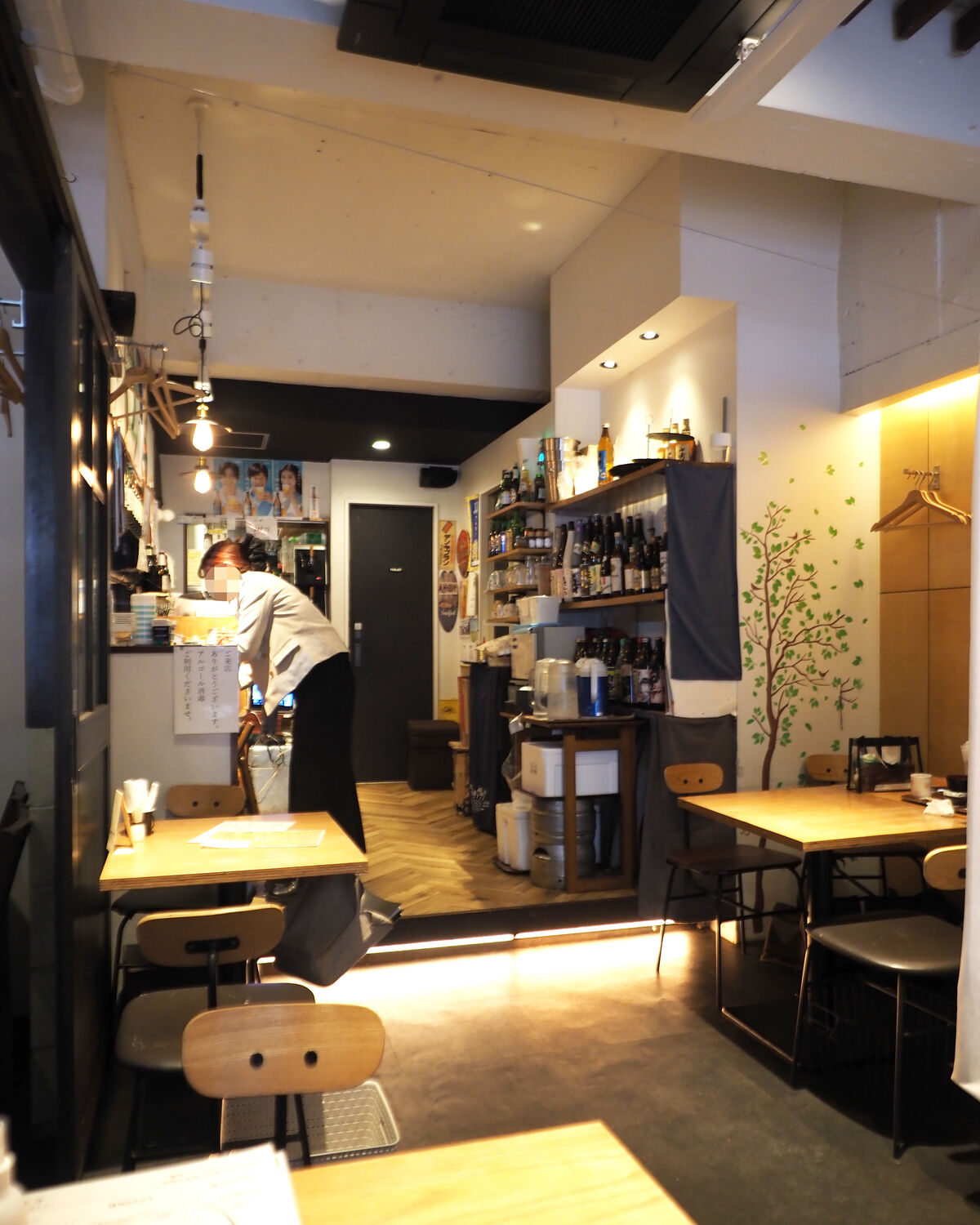 4名掛けテーブル3卓と2名掛けテーブル4卓が置かれるお店は店主ひとりで営業されているようで…