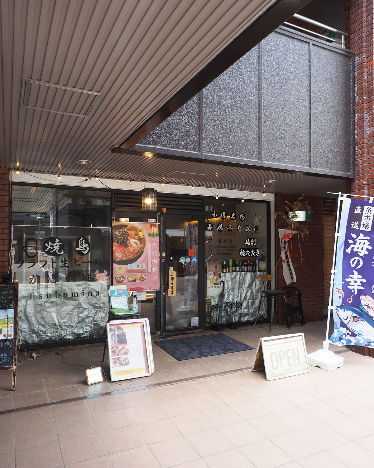 広々としたエントランスの奥に“小樽名物若鶏半身揚げ”や“馬刺し”“白レバー”“生がき”“焼鳥”“クラフト生ビール”などとのカッティングシートが貼られる居酒屋風のお店がありまして…
