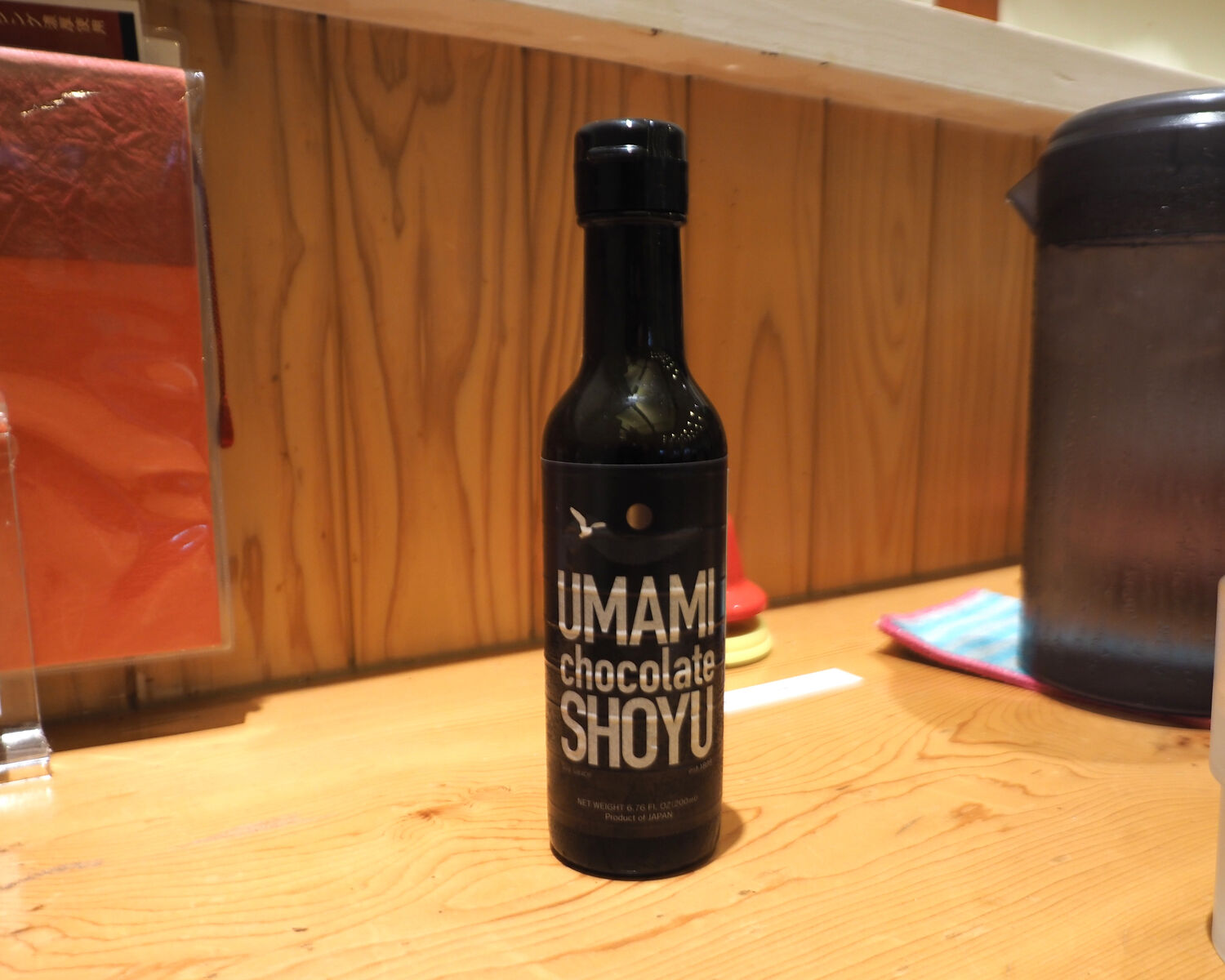 お皿にはオリジナル商品である“チョコレート醤油”をソースのように引かれていることでフランス料理のようでありました