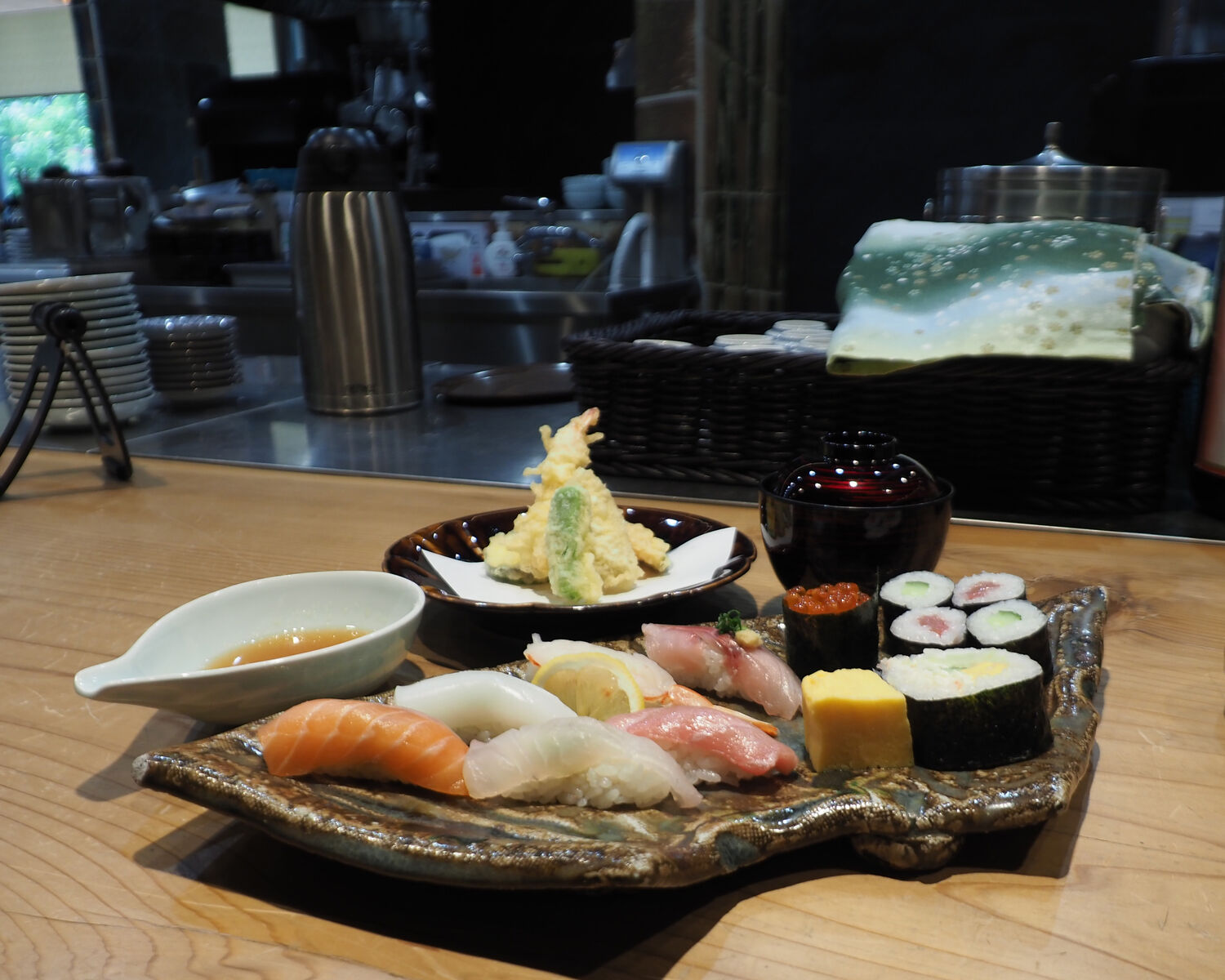 そしてお寿司 サーモン、鯛、イカ、中トロ、生エビ、生さば、いくら、玉子、鉄火巻き、かっぱ巻き、そしてサラダ巻きとボリュームも十分でありますし、ネタの鮮度感は然ることながら人肌のシャリもおいしく…