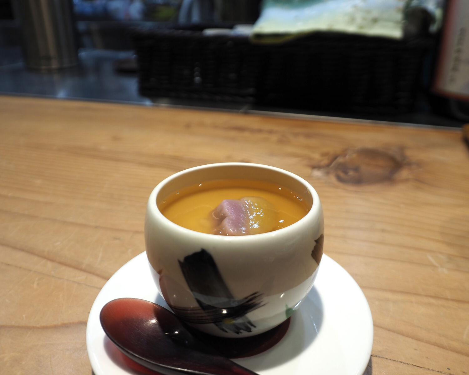 出汁の旨みと大きめなイカ団子に満足であったのですが、ちょっと巣が空いていたことで滑らかな舌ざわりを楽しむことができなかったことだけが残念でありました