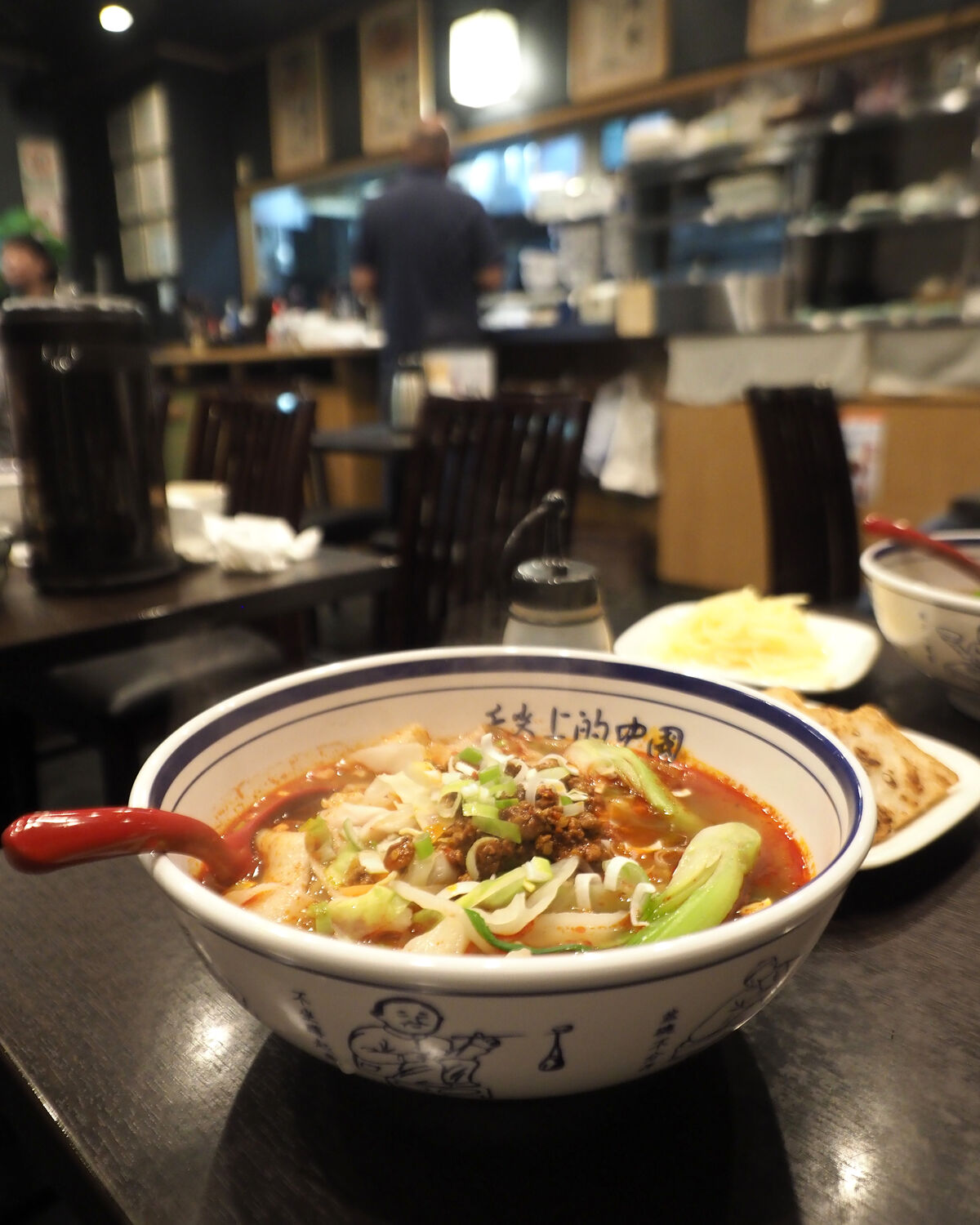 お店のメニューで唯一唐辛子のマークが3つ付いていることに怖さもありましたが、いざいただいてみますとだた唐辛子が辛いだけではなく、スープの旨みや甘み、そして製法こそ異なるものの刀削麺とも通ずる味わいの麺の甘みとも合わさることでバランスが良い絶品でありました
