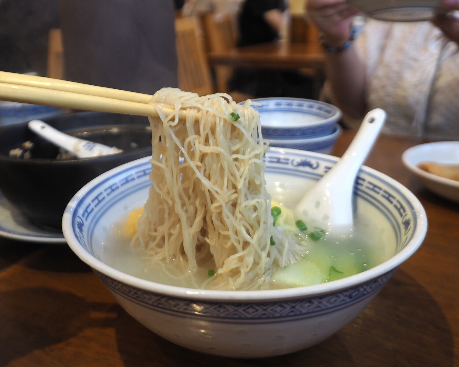 いただいたワンタン麺に使われるのは最もイメージされるであろう麺でありまして、細麺でありながらしっかりとした歯ごたえは、ワンタンのプルプルっとした食感との違いを楽しみことができるものでありました