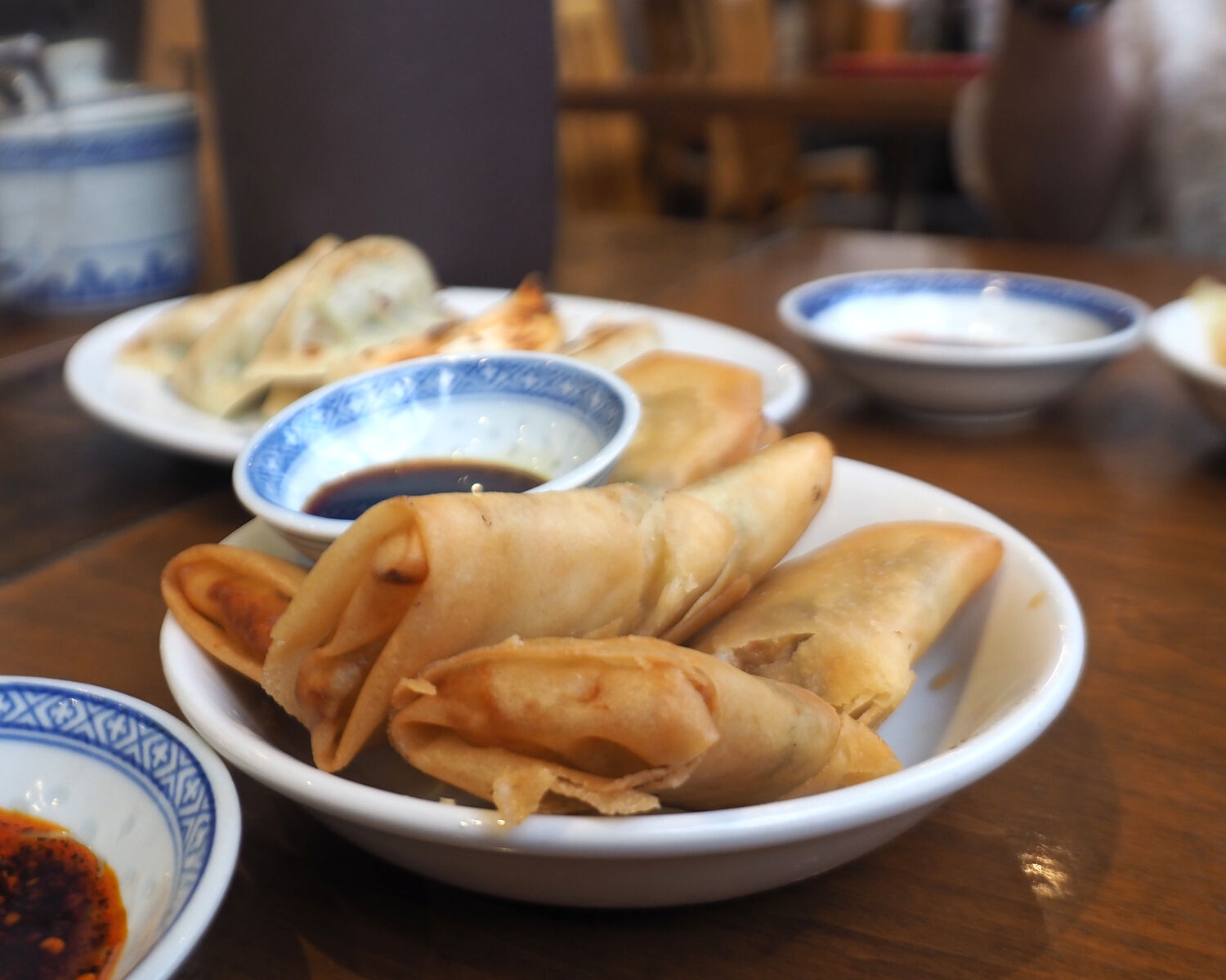 厚みがあるモチっとした皮に包まれる餃子は美しいきつね色に焼かれていることから見た目にもおいしさを感じることができますし、パンパンに包まれた餡はジュースが飛び出そうなほどにジューシーでありまして…