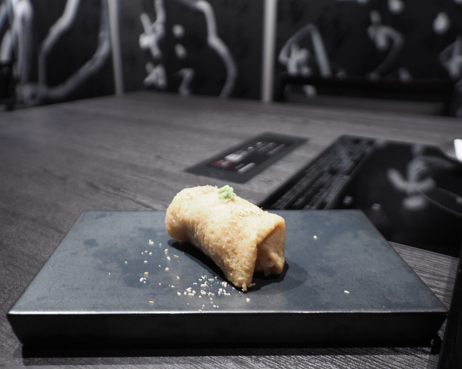 渡辺通りにある『海木』の「だしいなり」を模したようにも思えますが、たっぷりと出汁を含んだ揚げで一粒ひと粒が立ったシャリが包まれていまして…