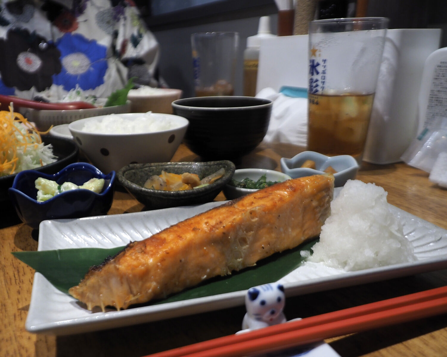 定食には4種の小鉢が付いていましたし、メインの銀鮭は想像を超えるほどの厚切りでありまして…