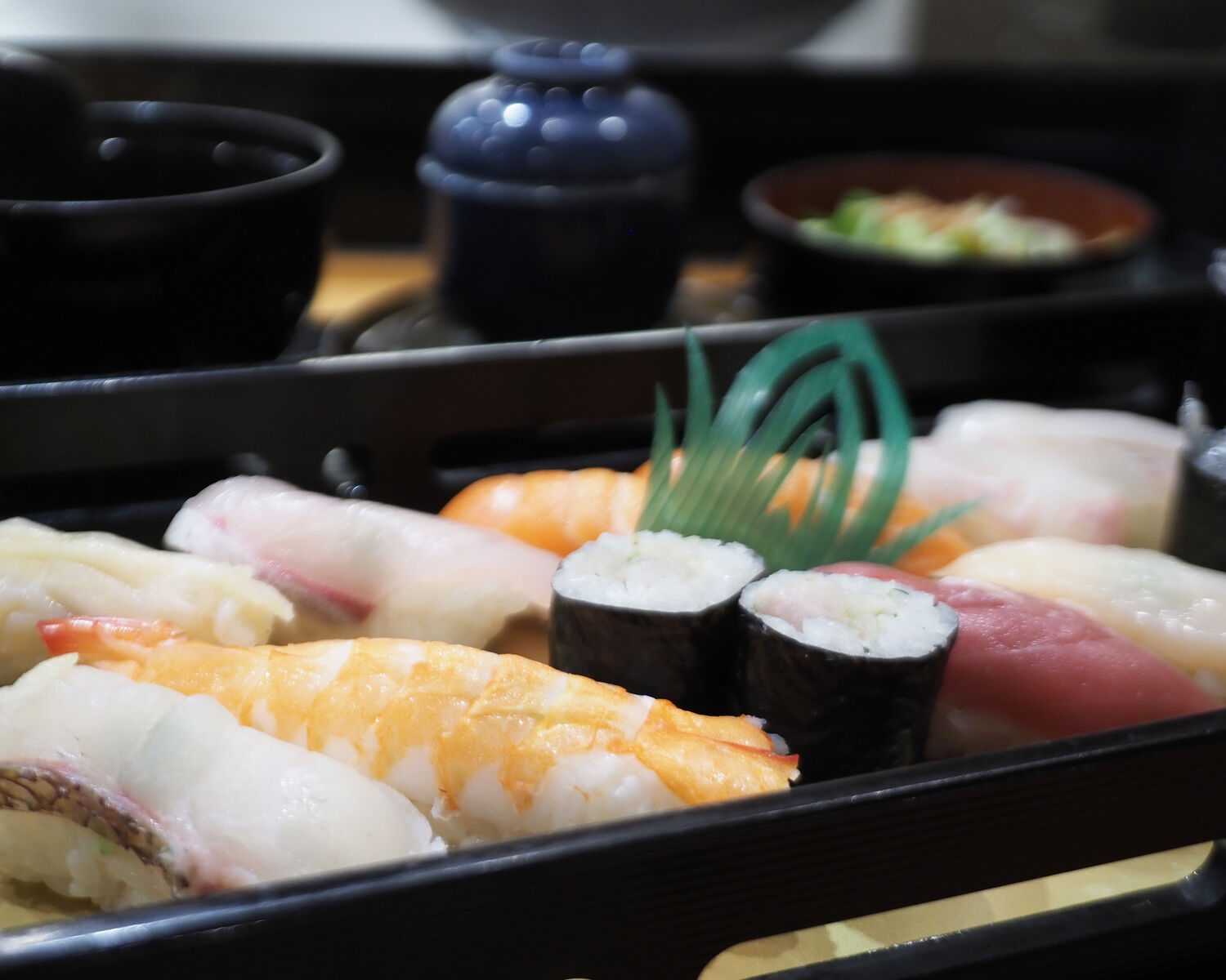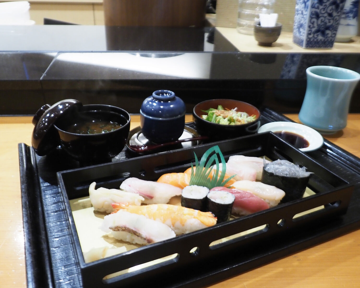 12貫が盛られるボリュームにも満足でありますが、鯛/海老/鮪/しらす/つぶ貝/サーモンなどどれも新鮮さが感じられるものでありますし、シャリも人肌で…