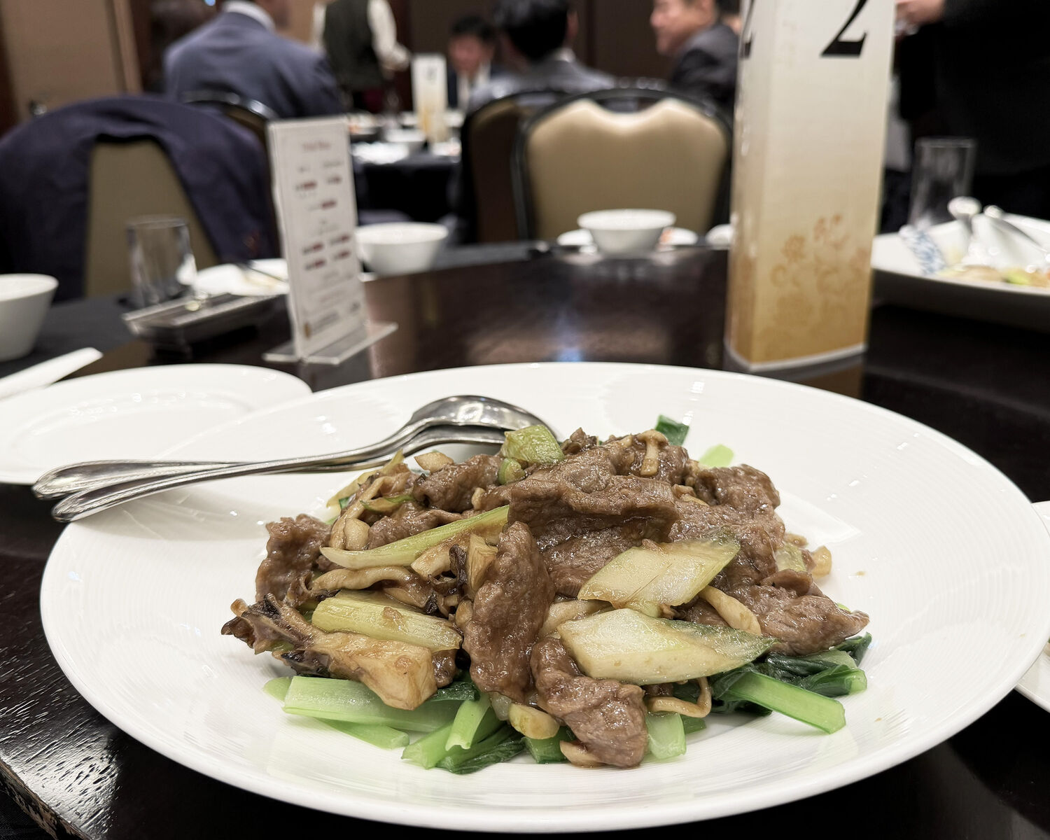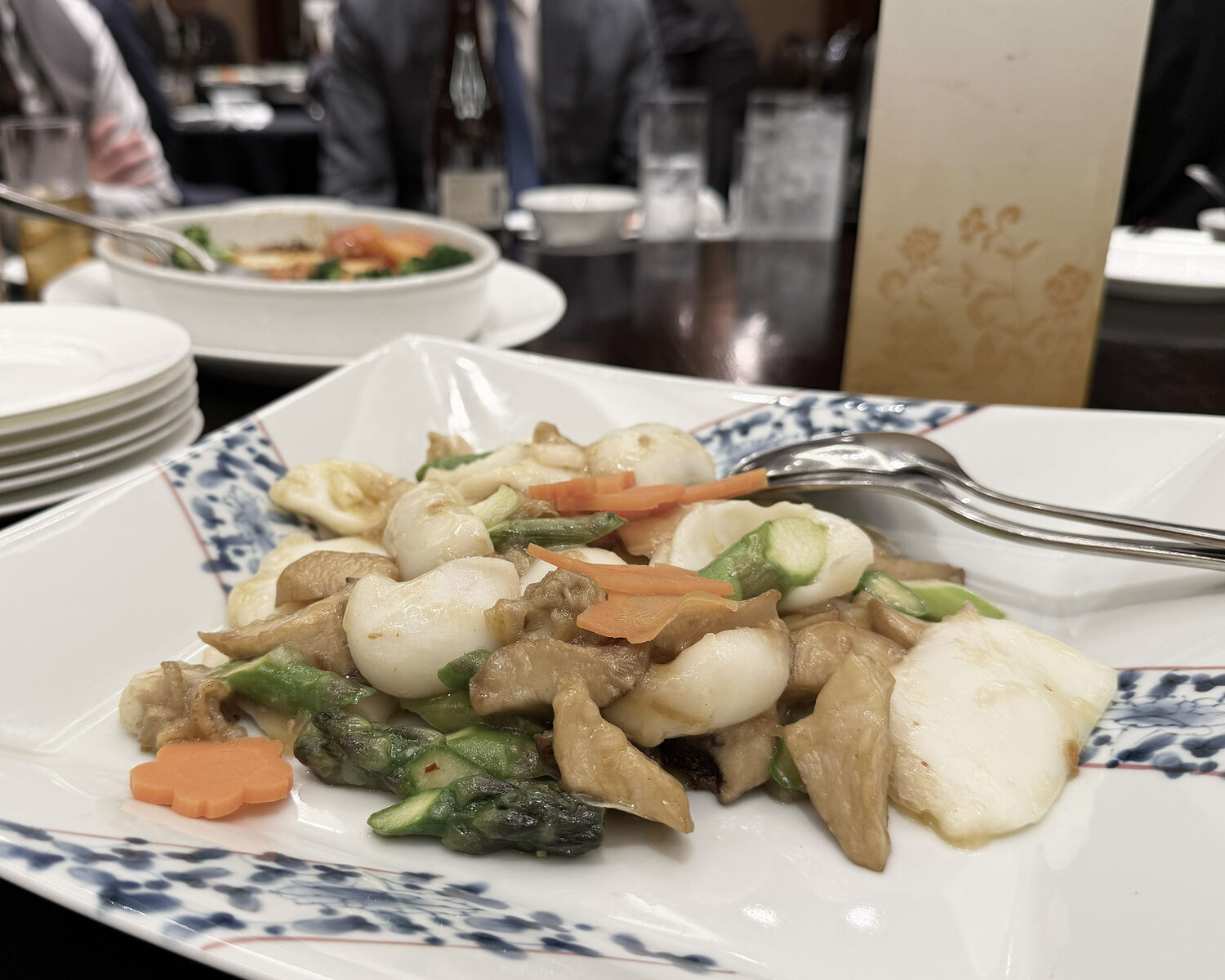 “イカ、ホタテ、キノコ、アスパラの炒め”と“牛ロースとセロリの炒め”