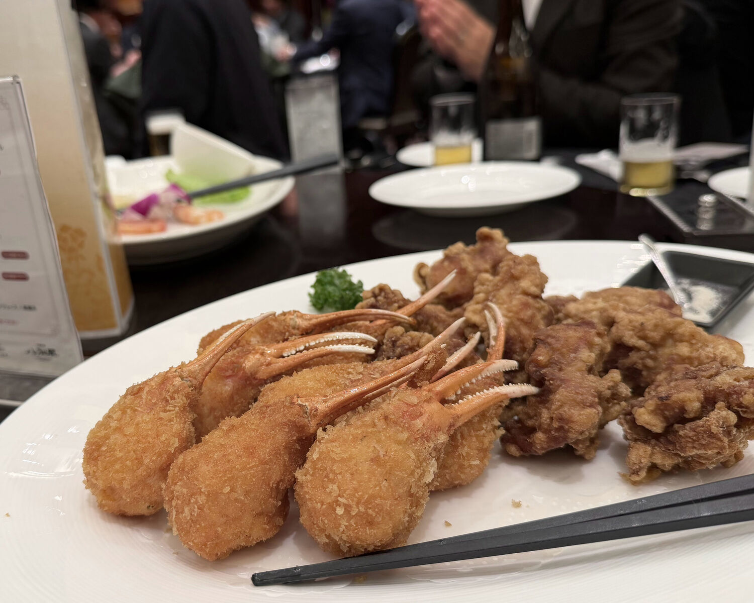 しっかりと下味が付けられた唐揚げはカラッとジューシーに揚がっていましたし、カニ爪はたっぷりな身が付けられていますしサクッとした歯ざわりが心地好く…