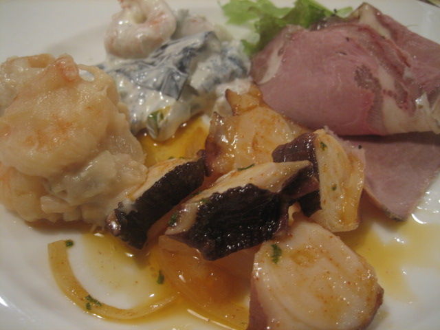蛸のマリネ ローストビーフ 海老のサラダ グラタン