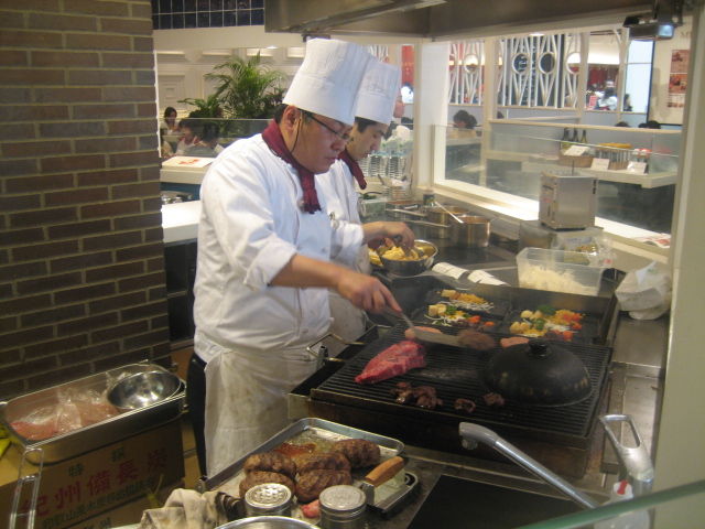 美味しそうなステーキやハンバーグが次々と手際よく焼かれていく