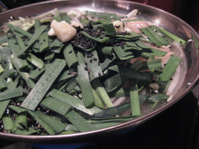 ニラがしんなりするまで煮込むのだけど、その間に、ホルモンの旨味と、キャベツの甘みがスープに溶け出して、さらに美味しいものに仕上がるのだけど・・・