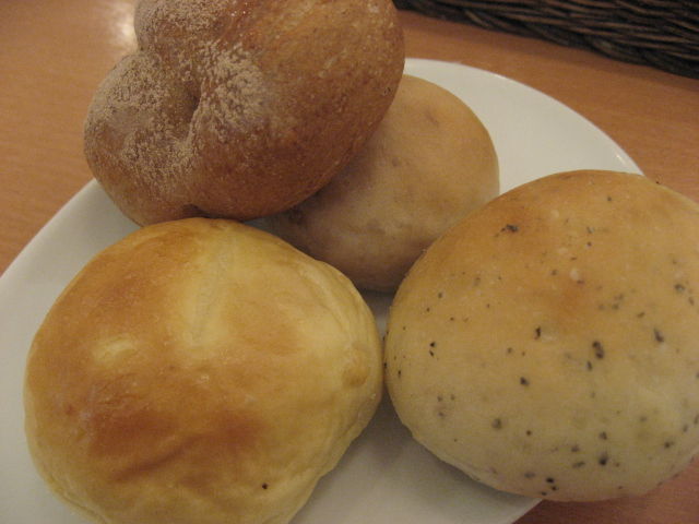 担当のスタッフが、何度も何度もテーブルにパンを配ってくる