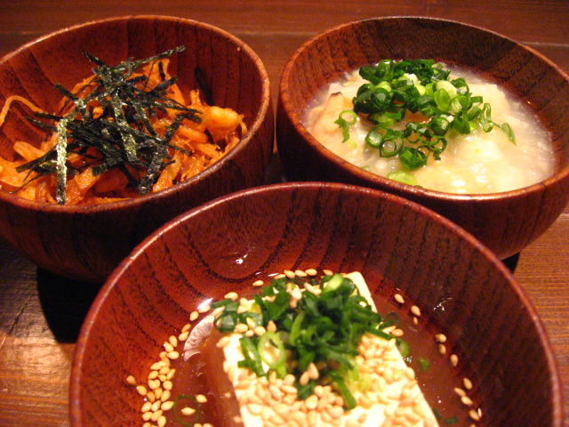 アサリ粥、冷奴、裂きイカ どれもが結構イケル