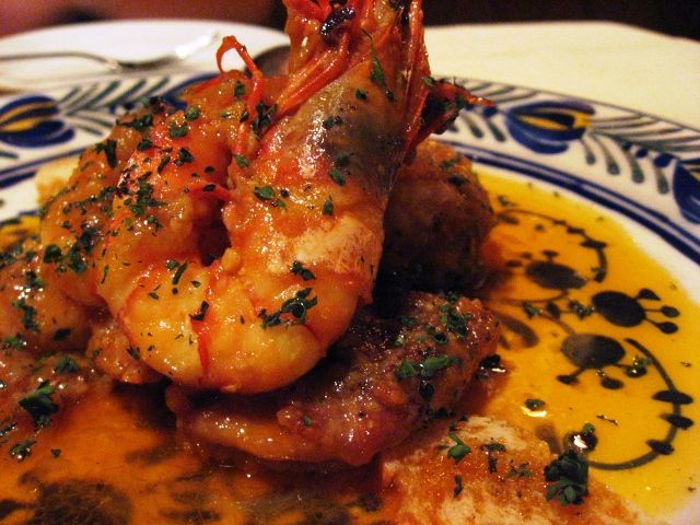 スペイン地鶏と大きめの海老をじっくりと炒めた料理