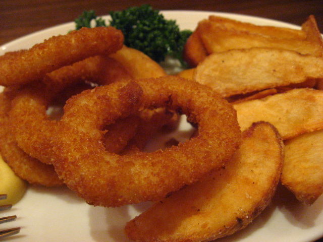 オニオンリングにフライドポテト