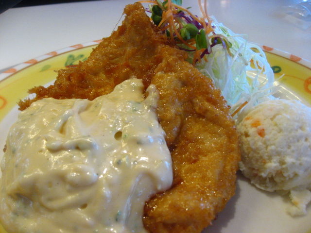 “チキン南蛮”とは、鳥の胸肉に卵を付けて揚げたものを南蛮酢に潜らせたもので、タルタルソースを掛けていただくのが特徴的