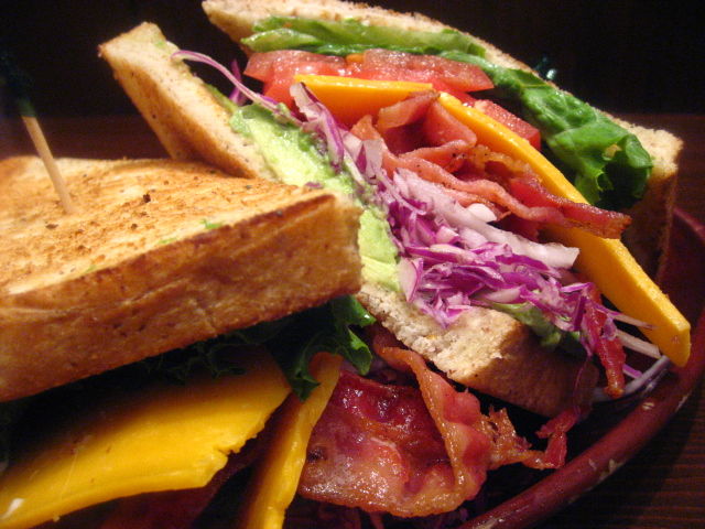 アボガド、ベーコン、チーズのサンドイッチ