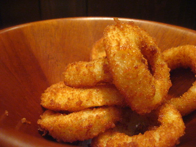 一緒にオニオンリングをいただいて、アメリカンな夜を演出してみたりして・・・