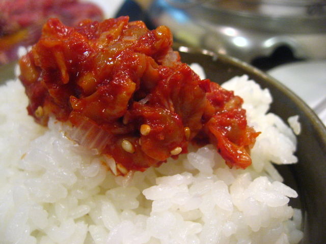 熱々ご飯に乗っけていただくチャンジャが何よりのご馳走