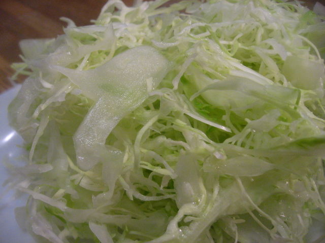 まずはお通しとも言える、キャベツの千切りが山盛り提供される