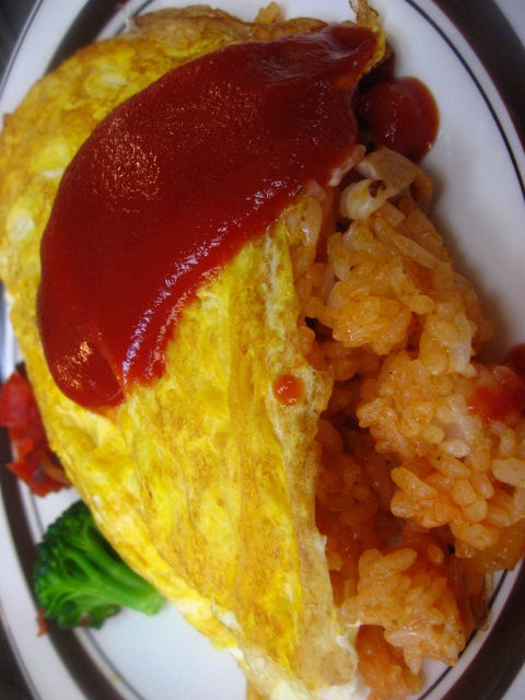 ケチャップで炒められたチキンライスがレトロ感を醸し出す