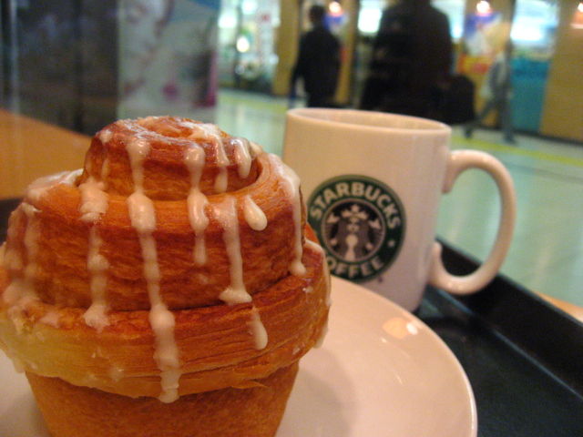 新幹線までちょっと時間があったので、スタバで“おめざ”のシナモンロール