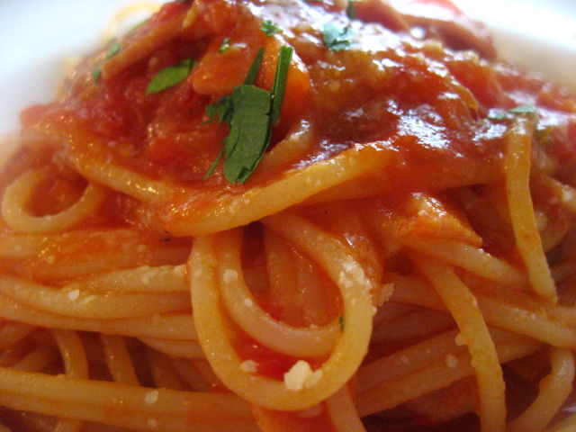 あまり煮詰めないトマトソースの酸味が、夏には良い感じに仕上がっている