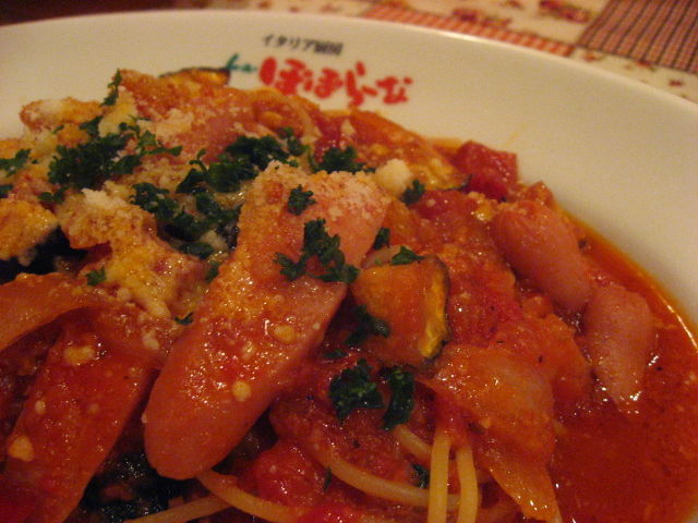 パスタは「なすとソーセージのトマトソース」